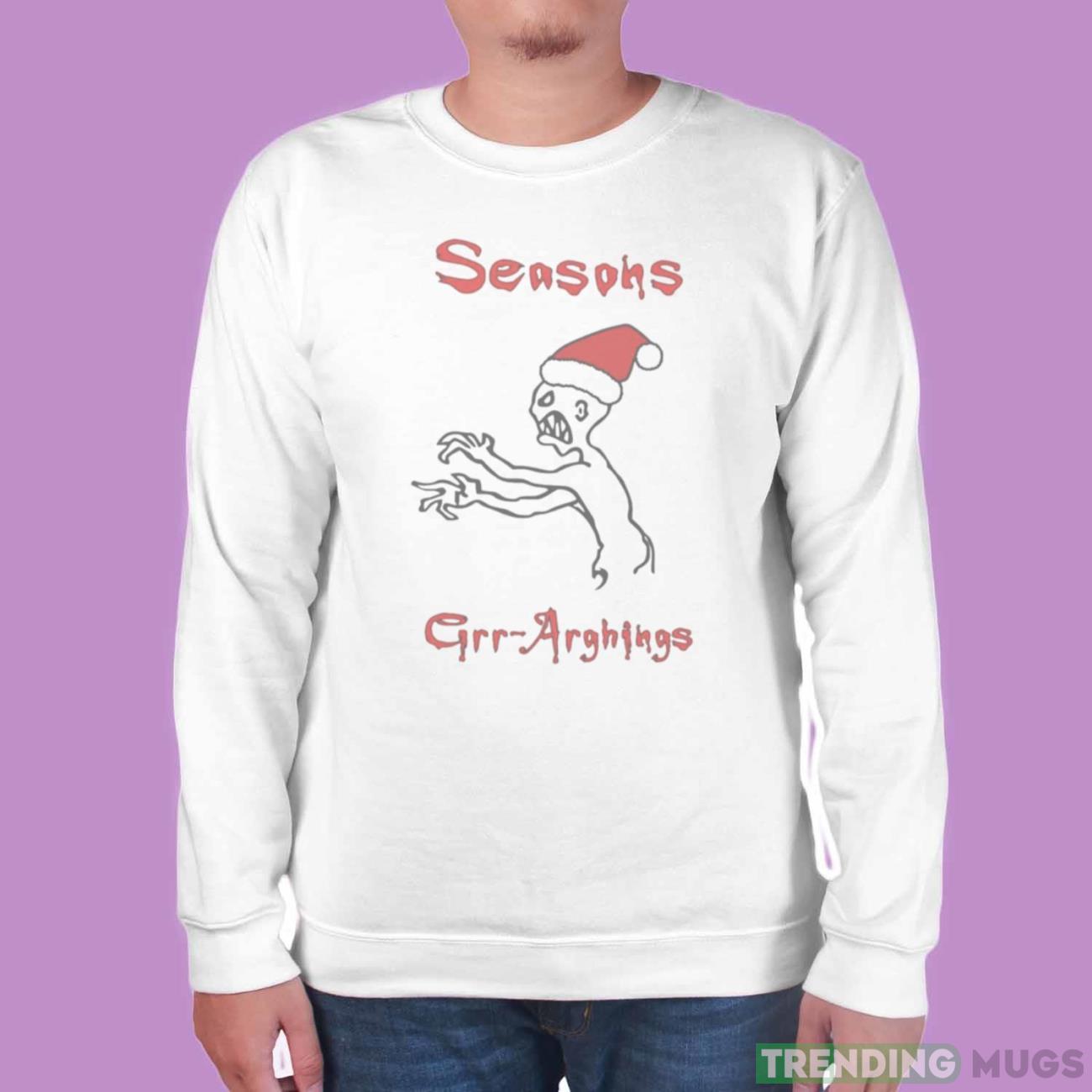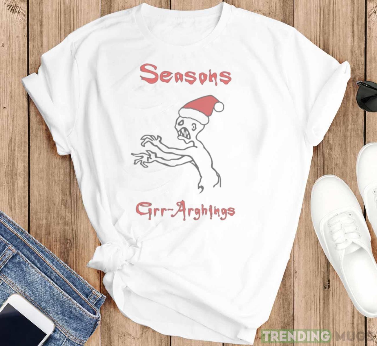 Made from premium quality materials, the Seasons Grr Arghings Christmas Grr Argh Santa shirt is not only stylish but also incredibly comfortable to wear. The soft fabric ensures a cozy fit, making it perfect for lounging by the fireplace or participating in festive activities with friends and family.