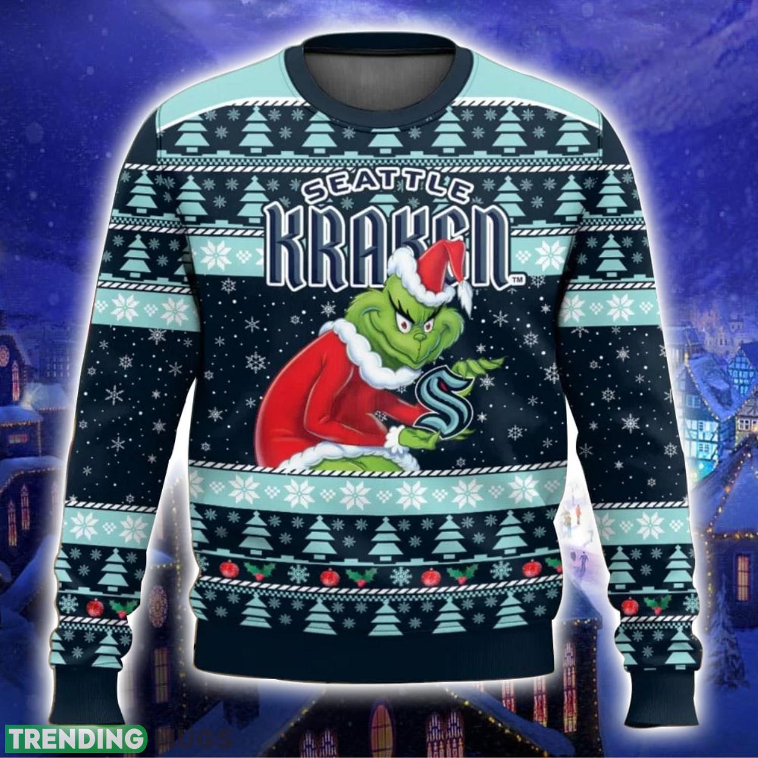 Seattle Kraken Grinch Ugly Christmas Sweater Trending Sweater For 2023 Christmas Holidays Product Photo 1