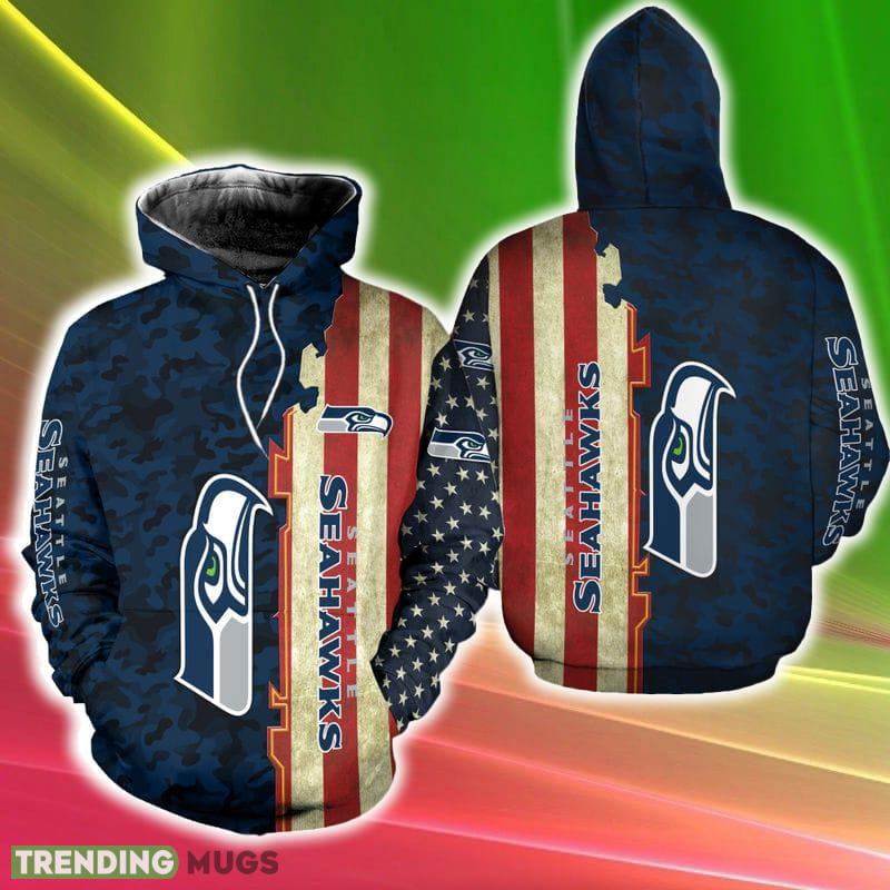 Crafted with utmost precision, our hoodie features a unique 3D design that brings the Seattle Seahawks logo to life. The vibrant colors of the American flag add an extra touch of patriotism, making it an ideal gift for any fan.