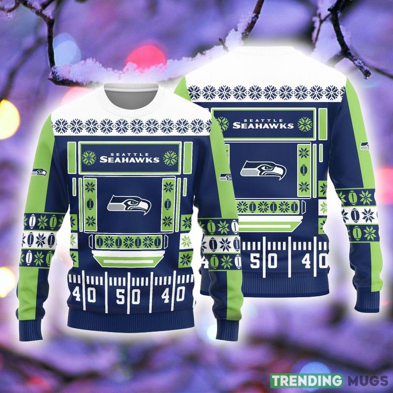 Seattle Seahawks Christmas Ball Snowfalke Pattern Knitted Ugly Christmas Sweater AOP Gift For Men And Women Informations: