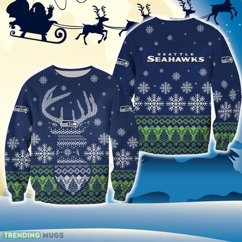 Seattle Seahawks Christmas Reindeer Cabin All Over Print 3D Sweater For Fans Gift Christmas Informations: