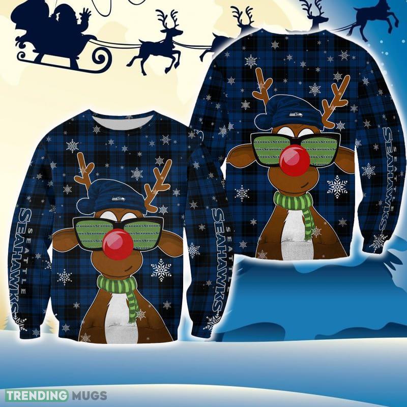 Seattle Seahawks Christmas Reindeer Sunglasses Snowboard All Over Print 3D Sweater For Fans Gift Christmas Informations: