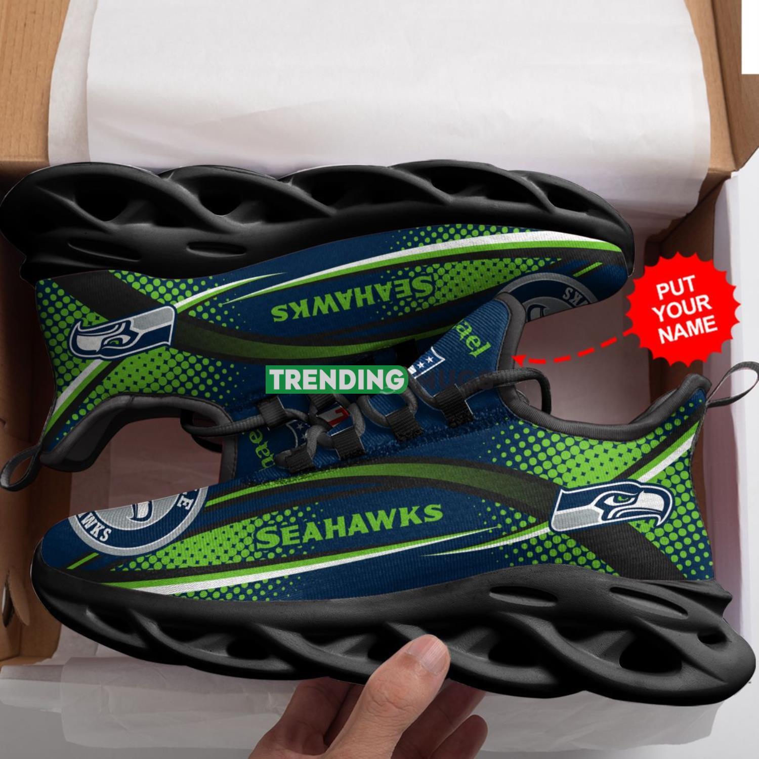 Are you ready to show off your Seattle Seahawks pride in style? Look no further than our Seattle Seahawks Custom Personalized Max Soul Sneakers Comfortable Men Women Shoes! Designed with the utmost attention to detail, these sneakers are the perfect blend of comfort and team spirit.