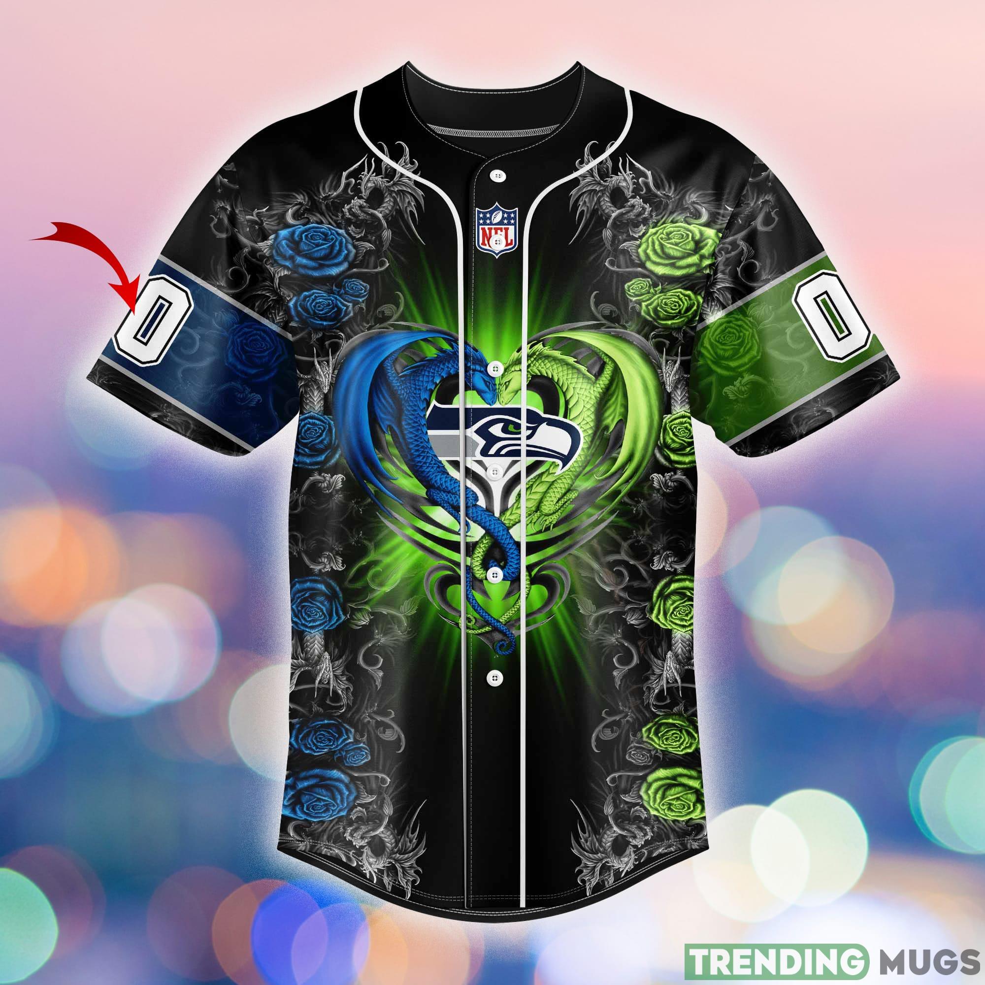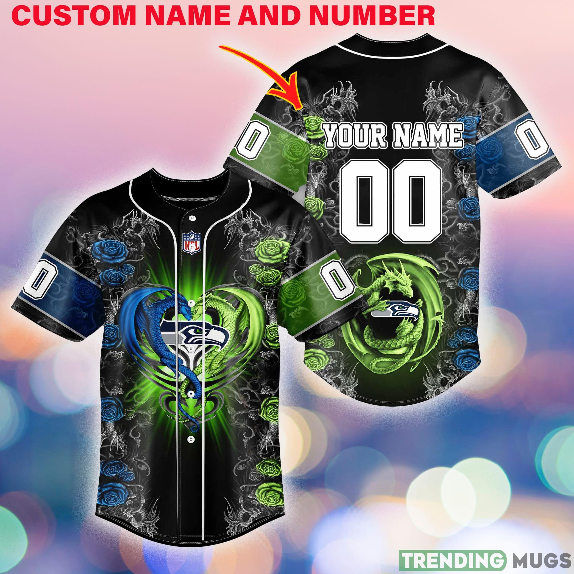 Are you a die-hard Seattle Seahawks fan? Show your team pride with our Seattle Seahawks Design Custom Number And Name NFL Dragon Jersey Shirt! This one-of-a-kind shirt is the perfect gift for any Seahawks fanatic.