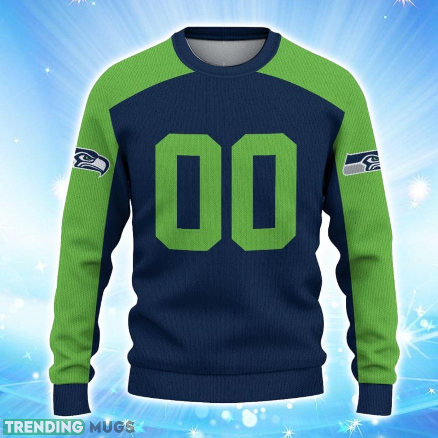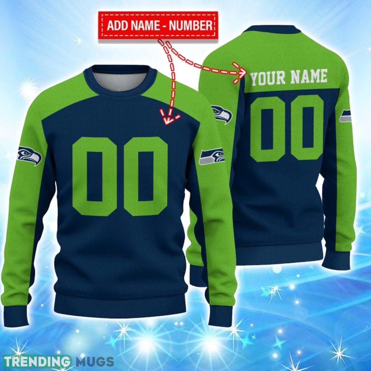 Seattle Seahawks Limited Edition Knitted 3D Ugly Christmas Sweater Custom Name And Number Informations: