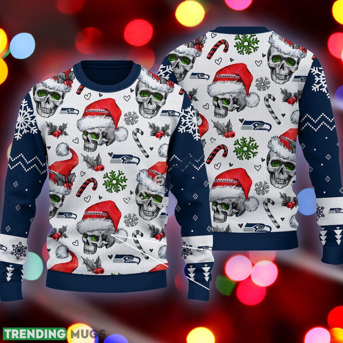 Seattle Seahawks Logo Skull Candy Cane Navy Knitted Christmas 3D Sweater Informations: