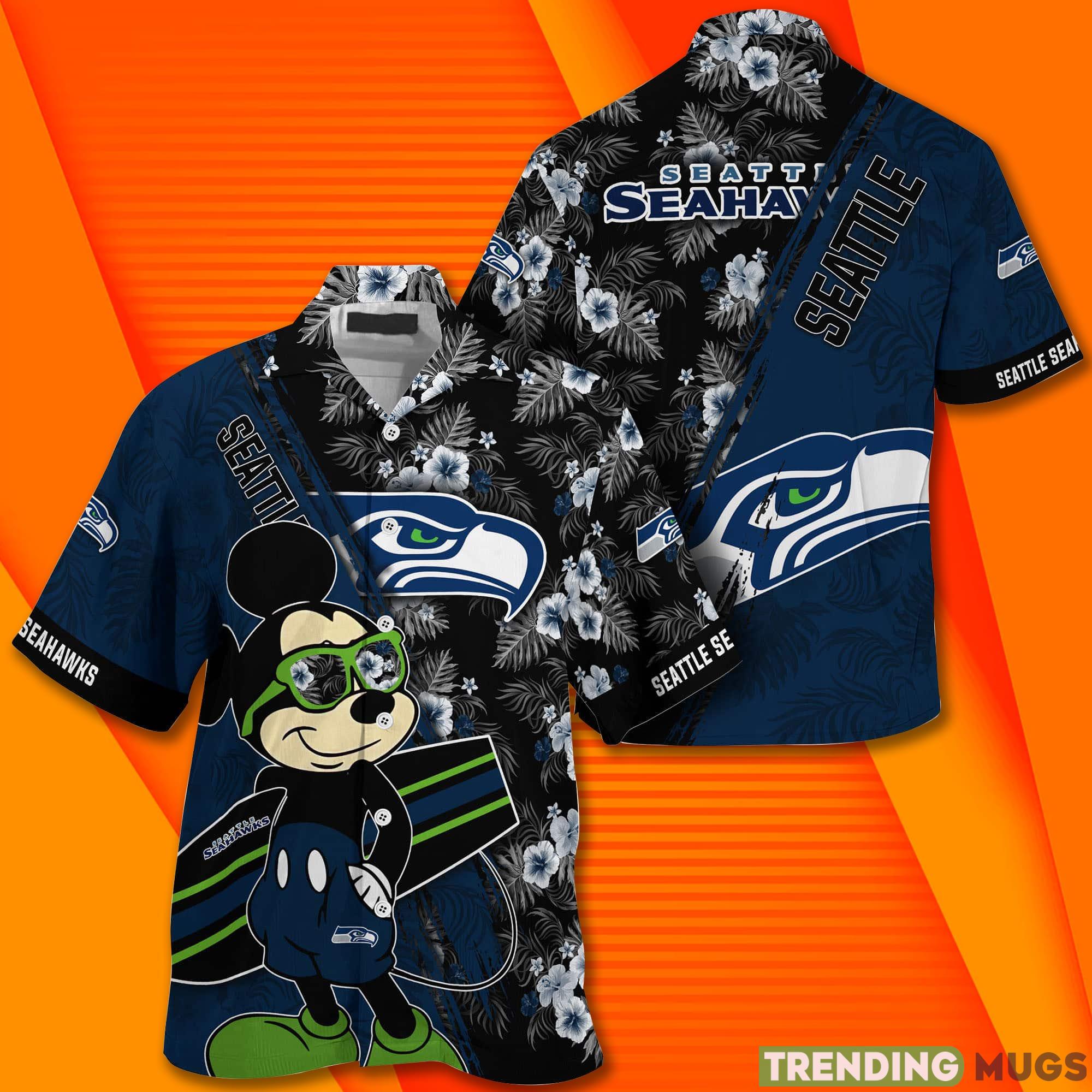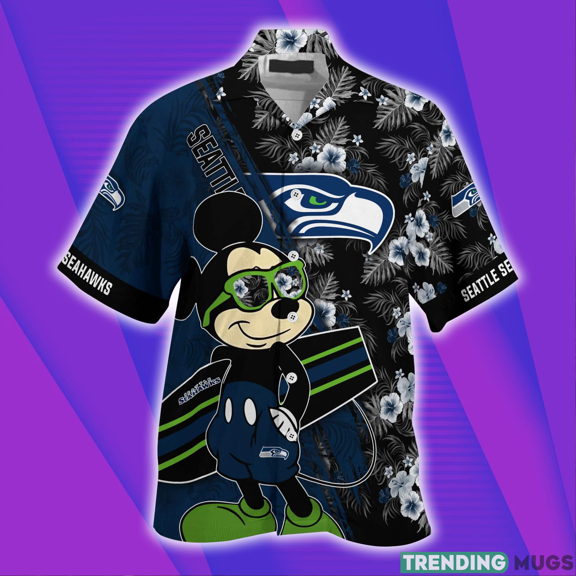 Seattle Seahawks NFL And Mickey Mouse Short Sleeves Hawaiian Shirt Details: