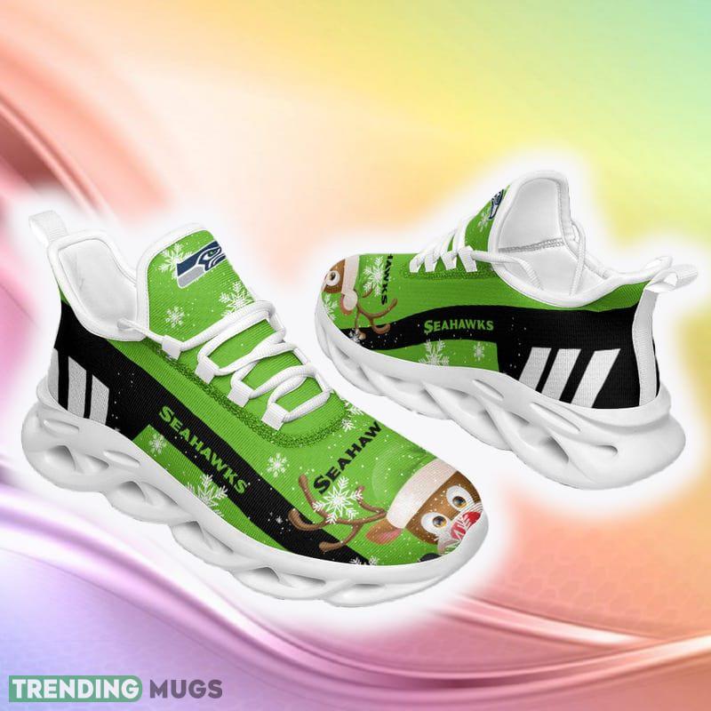 Seattle Seahawks Reindeer Ugly Christmas Snow Flowers Green Color Sneakers Max Soul Shoes For Fans Gift information: