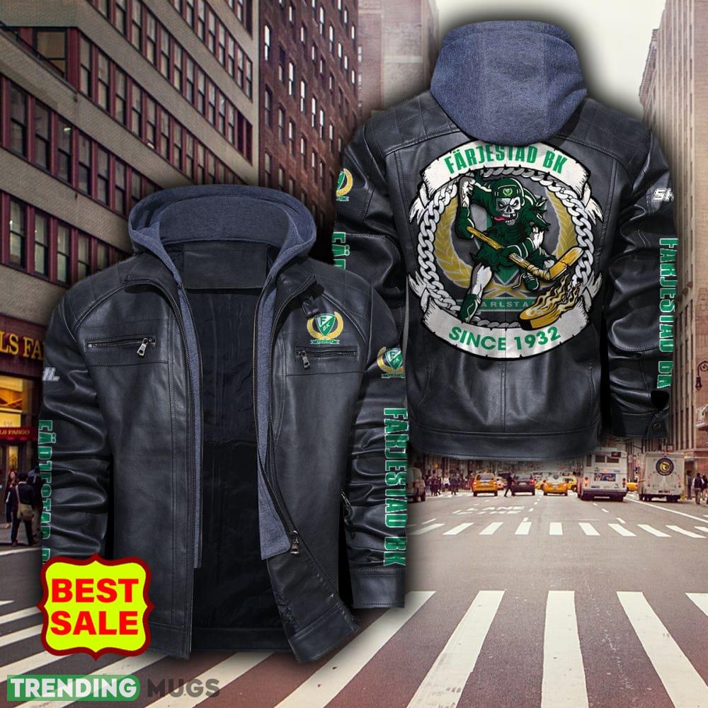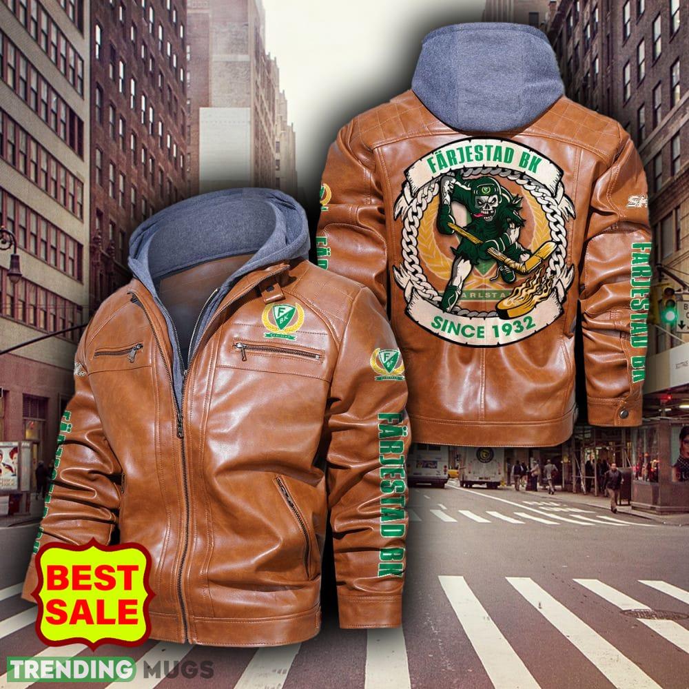 Don’t miss this opportunity to support your favorite team in style. Grab your SHL Hockey Teams Farjestad BK Logo Brown and Black Leather Jacket now and let your passion for the game shine through!