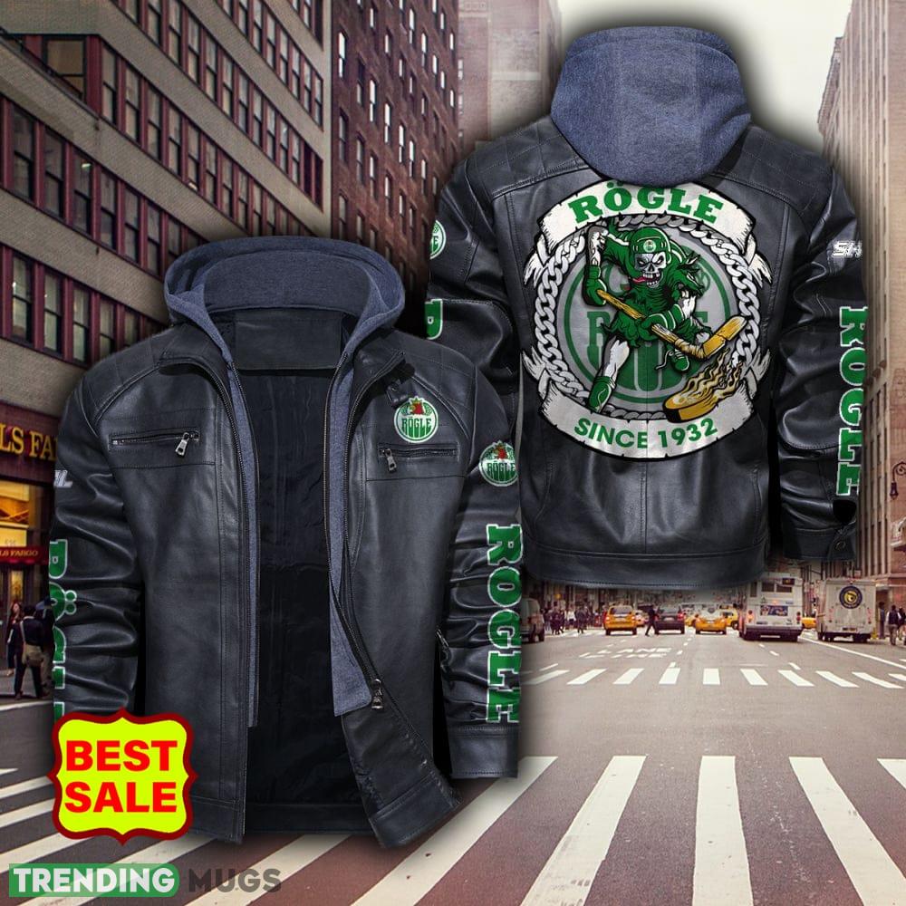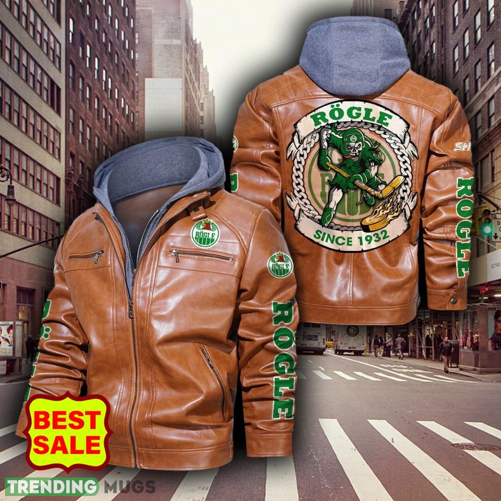 Some of the SHL Hockey Teams Rogle BK Logo Men Women Leather Jacket Black And Brown photos
