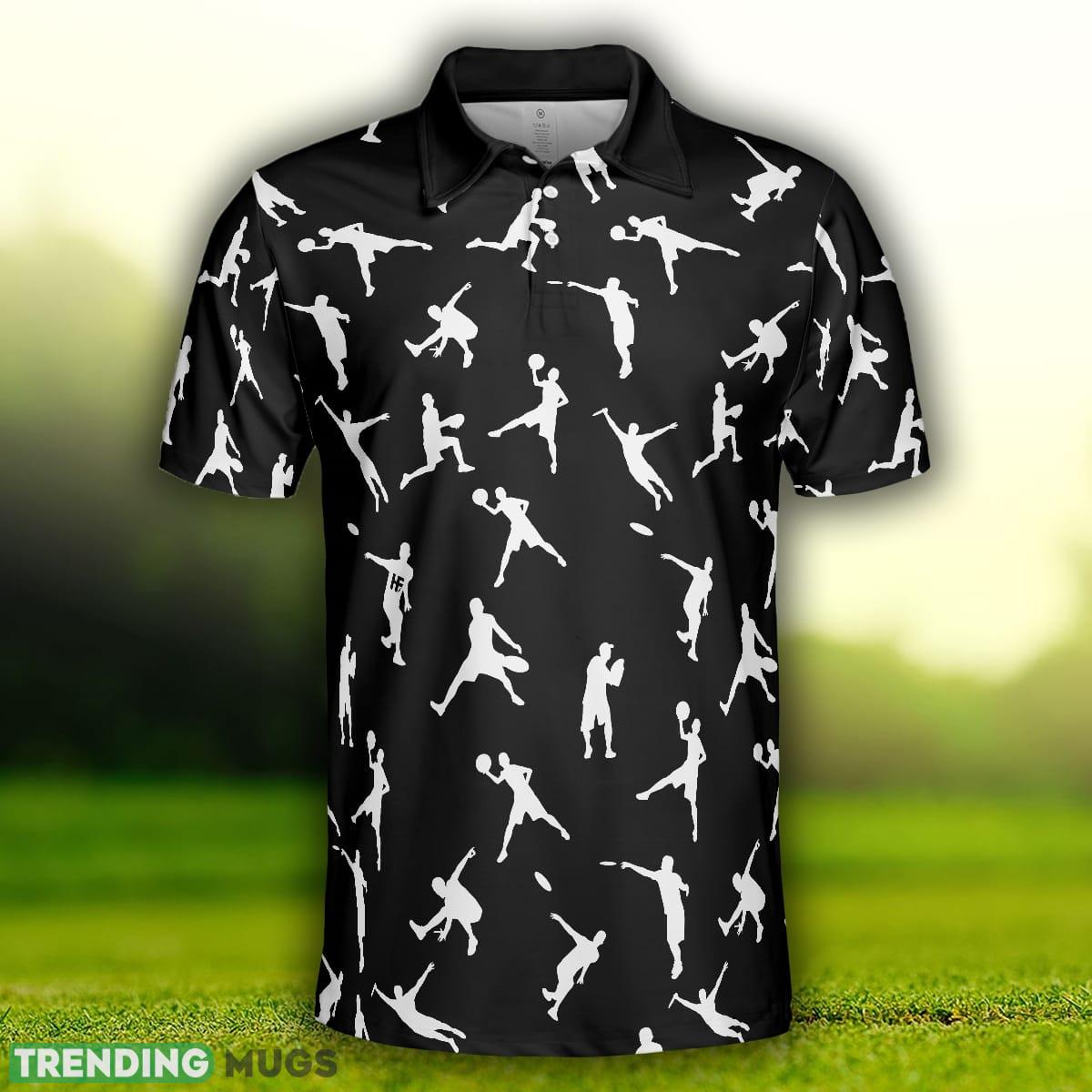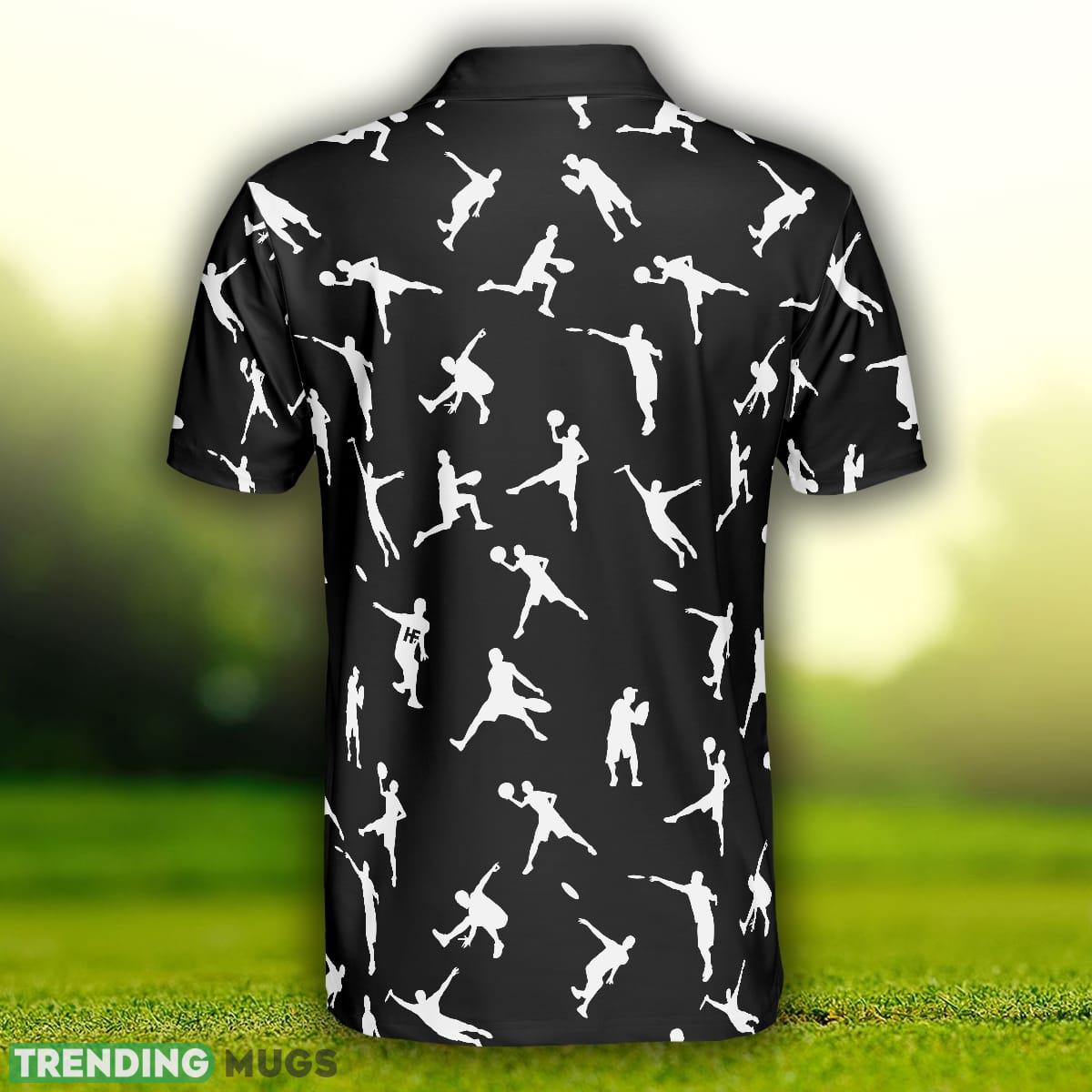 Silhouette Playing Disc Golf, Black And White Disc Golfer Pattern, Disc Golf Shirt Polo Shirt Information: