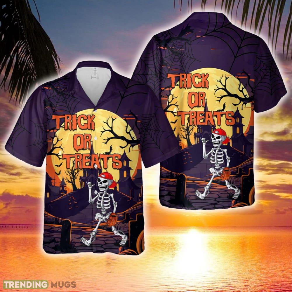 Skeleton Player Baseball Halloween Hawaiian Shirt Details: