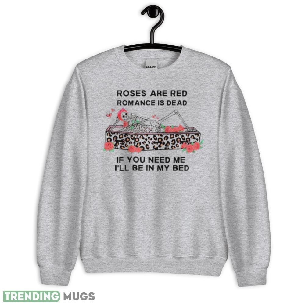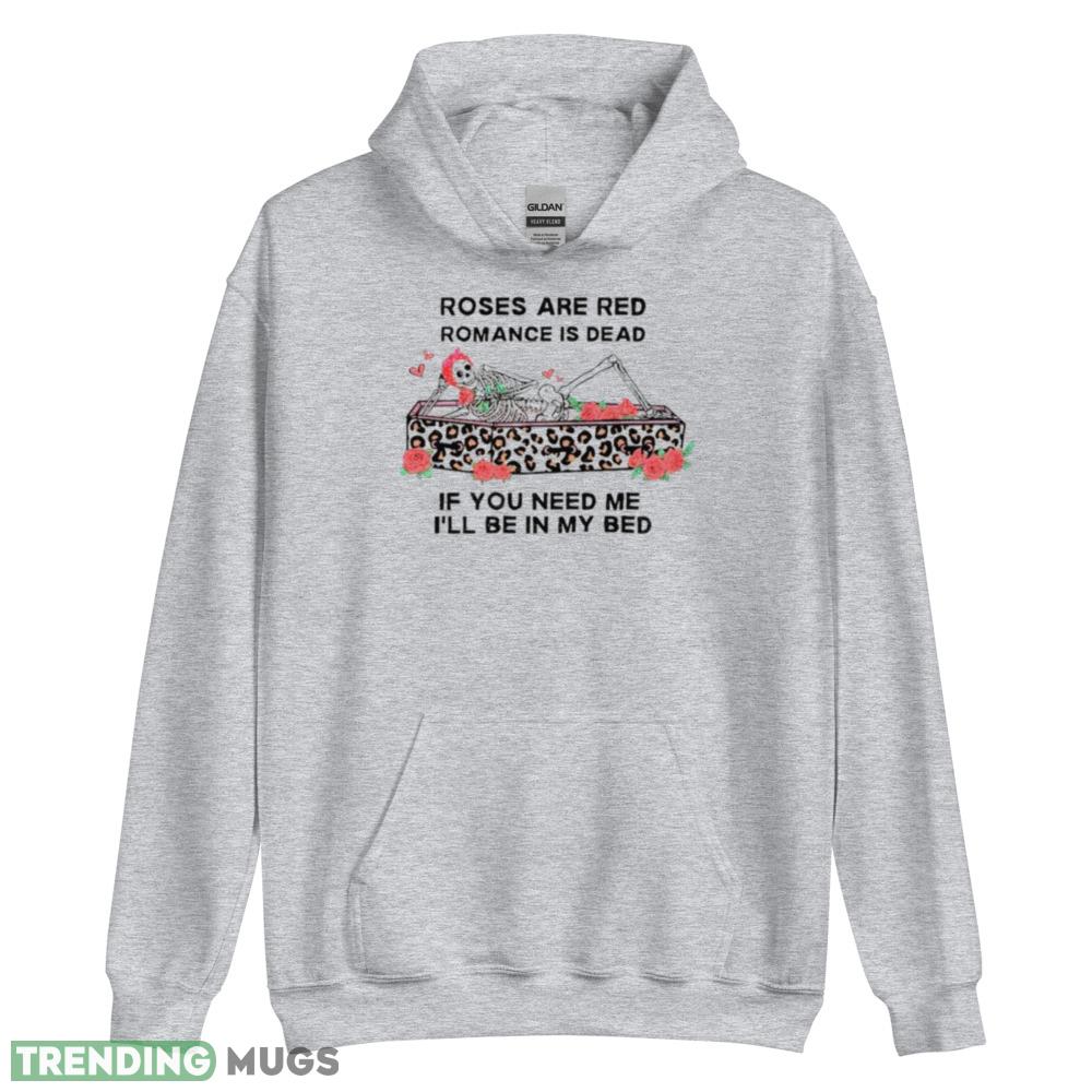Whether you’re dressing up for a night out or just looking for a fun and unique addition to your casual wardrobe, the Skeleton Rose Are Red Romance Is Dead If You Need Me I’ll Be In My Bed Shirt is the perfect choice. So why wait? Add this must-have piece to your collection today and make a statement wherever you go!