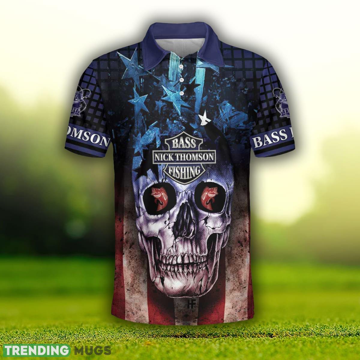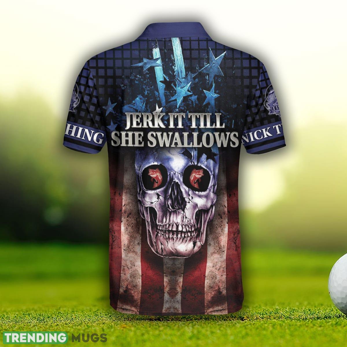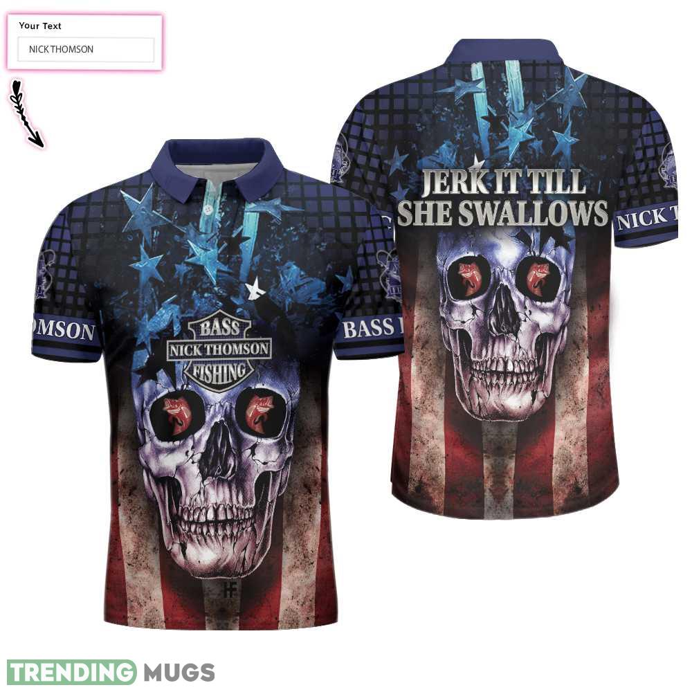 Skull Bass Fishing, Jerk It Till She Swallows, American Flag Fishing Shirt Custom Name Polo Shirt Information:
