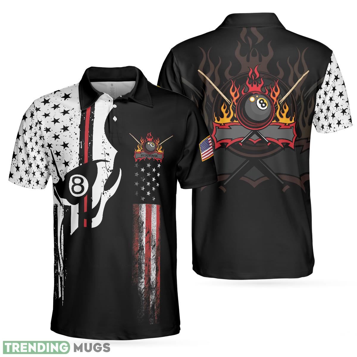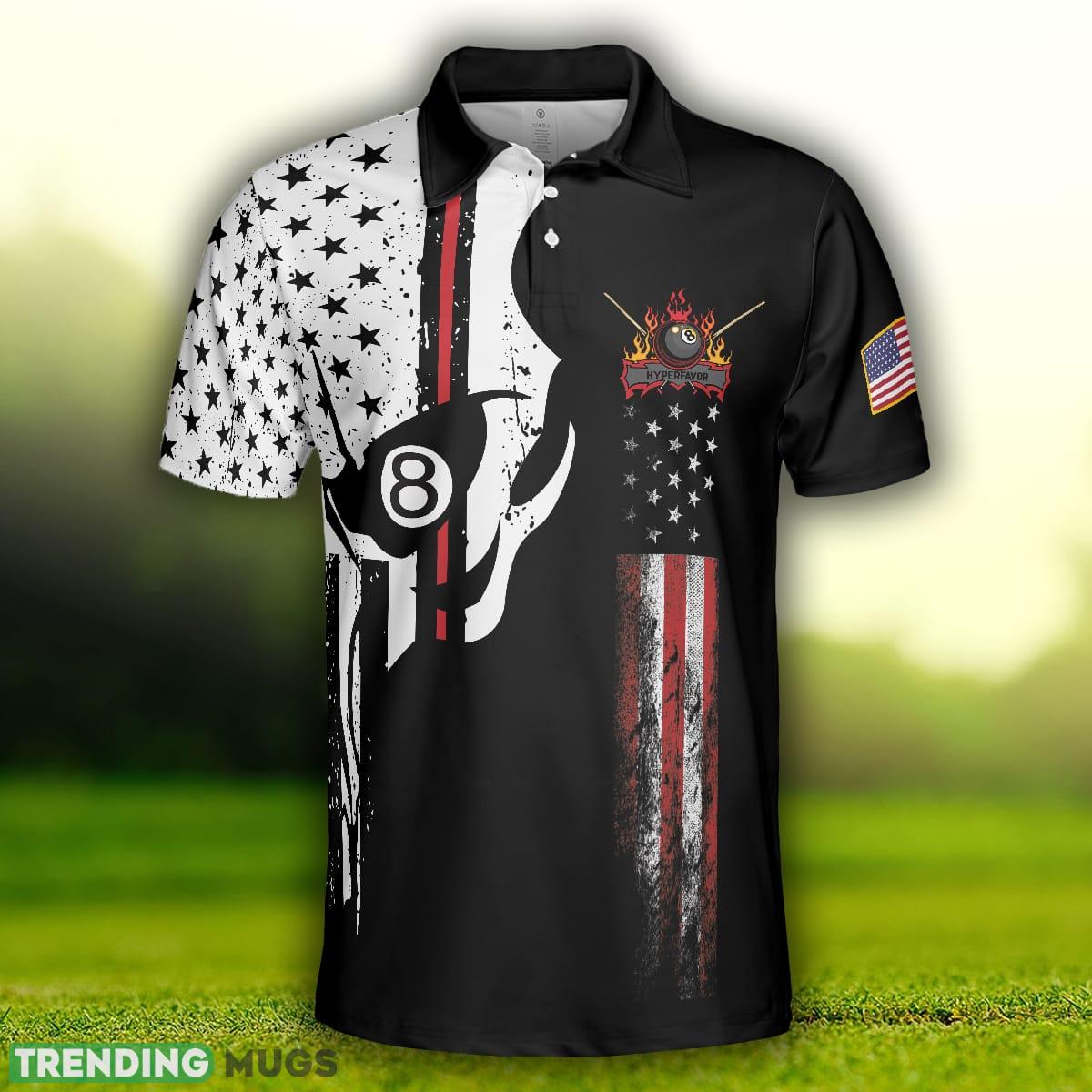 Skull Billiards Pool, Black And White American Flag, Patriotic Billiards Shirt Polo Shirt Information: