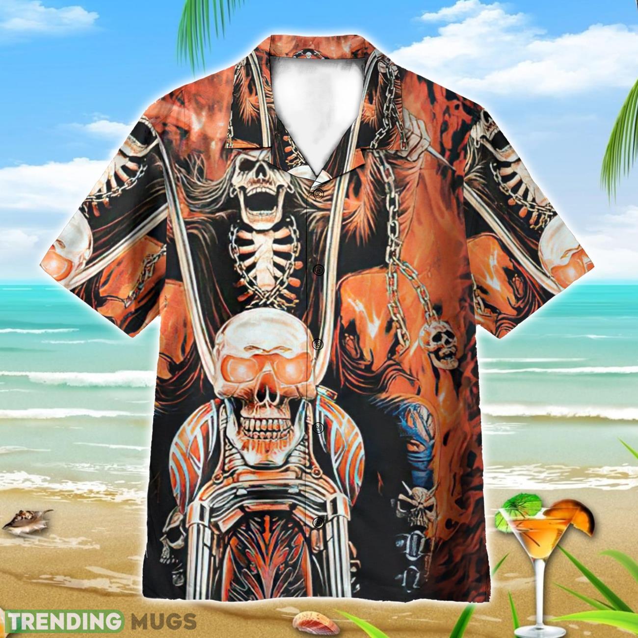 Skull Gangster Biker Ride Or Die Motorcycles Racing 3D Hawaiian Shirt Summer Vaction Gift Product Photo 1