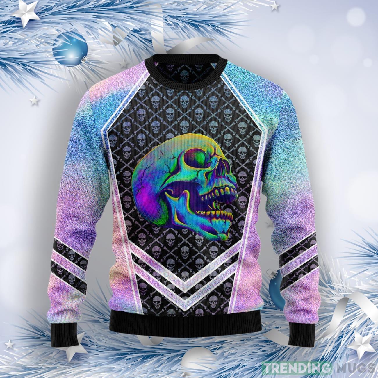 Order your Skull Hologram Ugly Christmas Sweater today and be the talk of the town this holiday season!