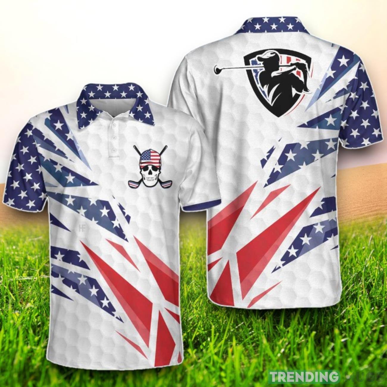 Skull Wearing American Flag Hat And Golf Sticks USA Flag Polo Shirt Information: