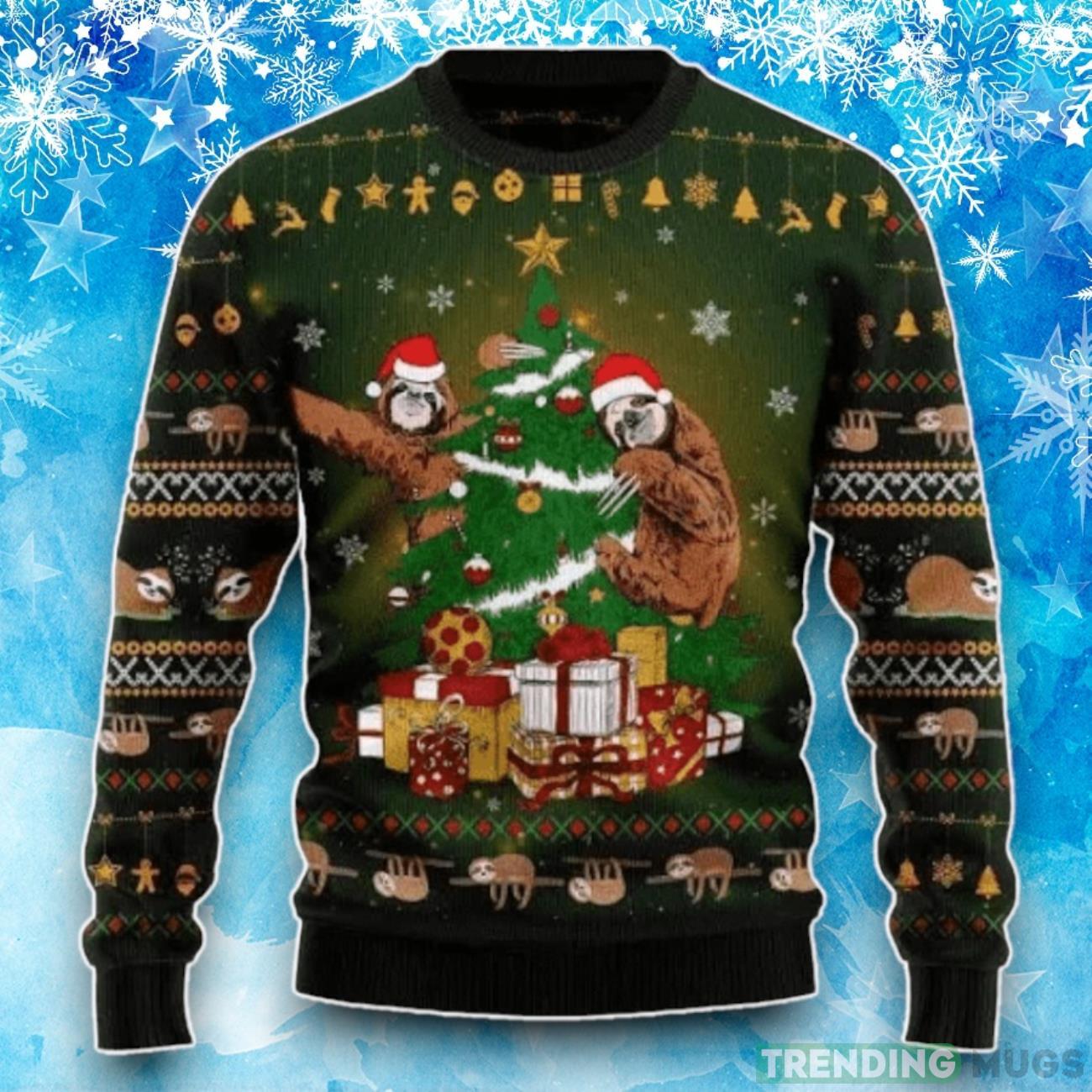 Don’t miss out on the opportunity to showcase your love for sloths and the holiday season with this eye-catching sweater. Order the Sloth With Tree Black Ugly Christmas Sweater today and let your festive spirit shine!