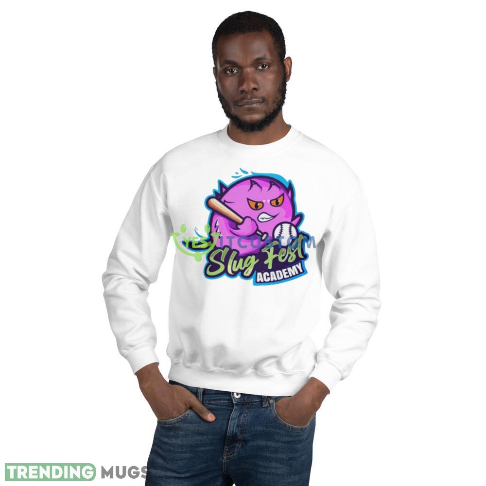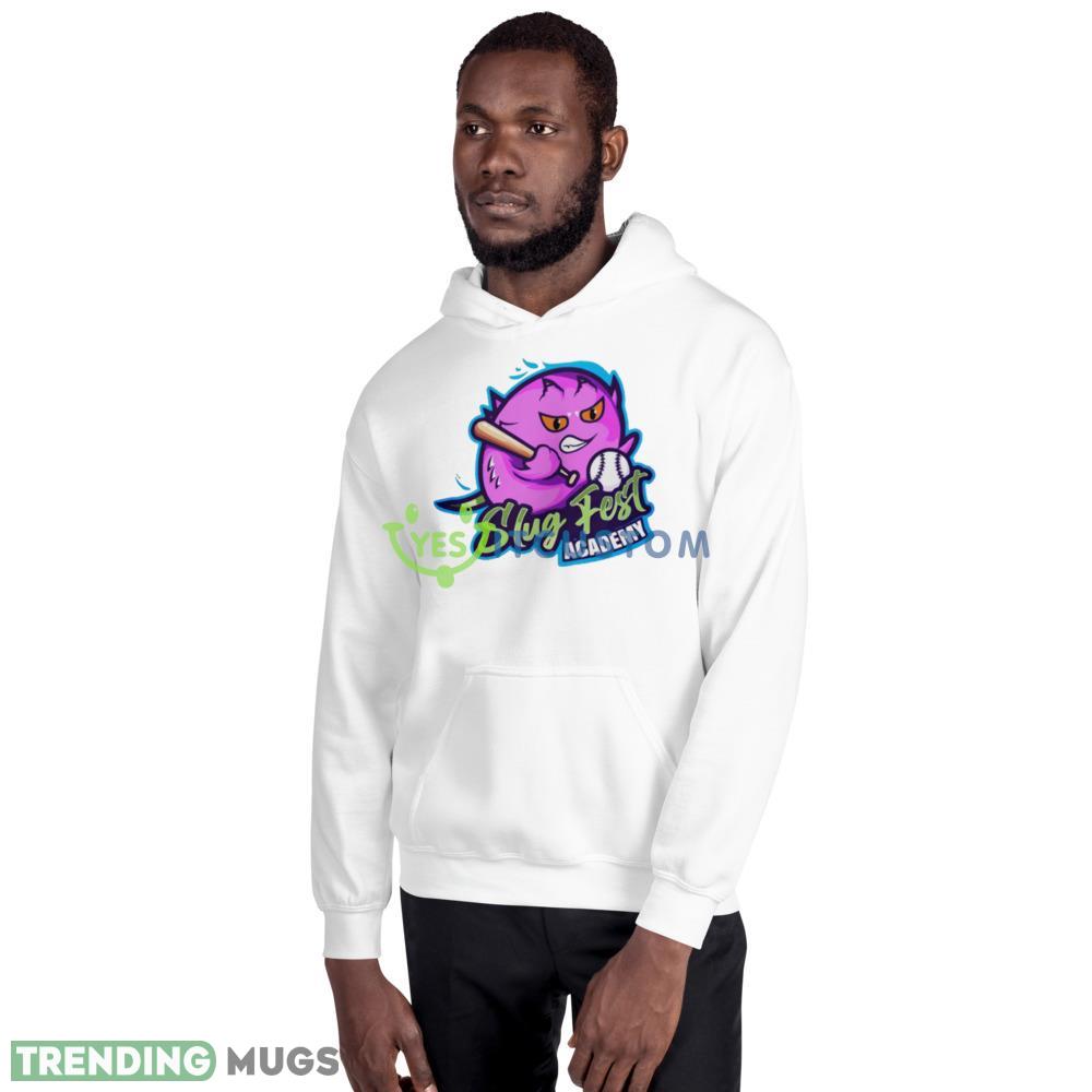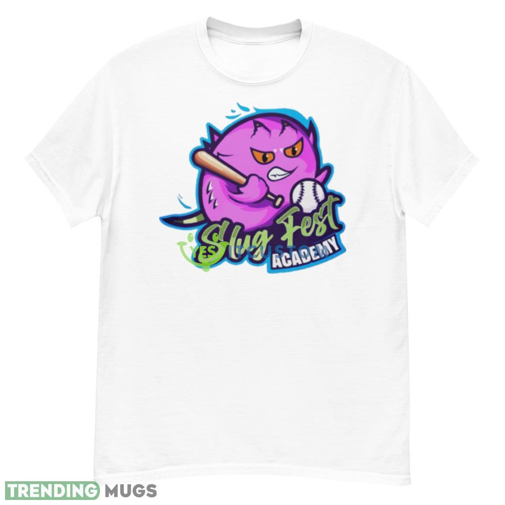 The Slug fest academy logo is emblazoned on the front of the shirt, showcasing your love for this iconic brand. With a mockup design, you can easily envision how this shirt will look on you, helping you make the perfect purchase.
