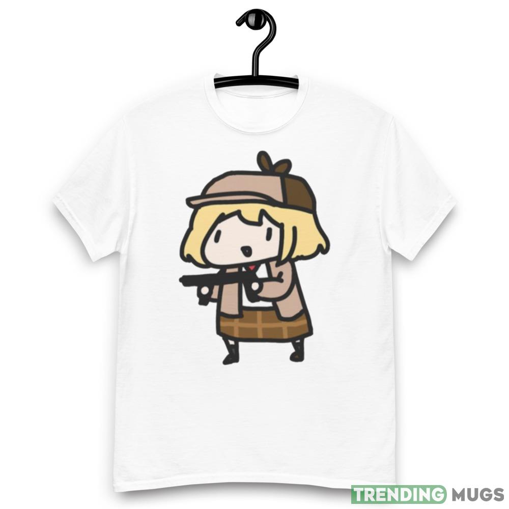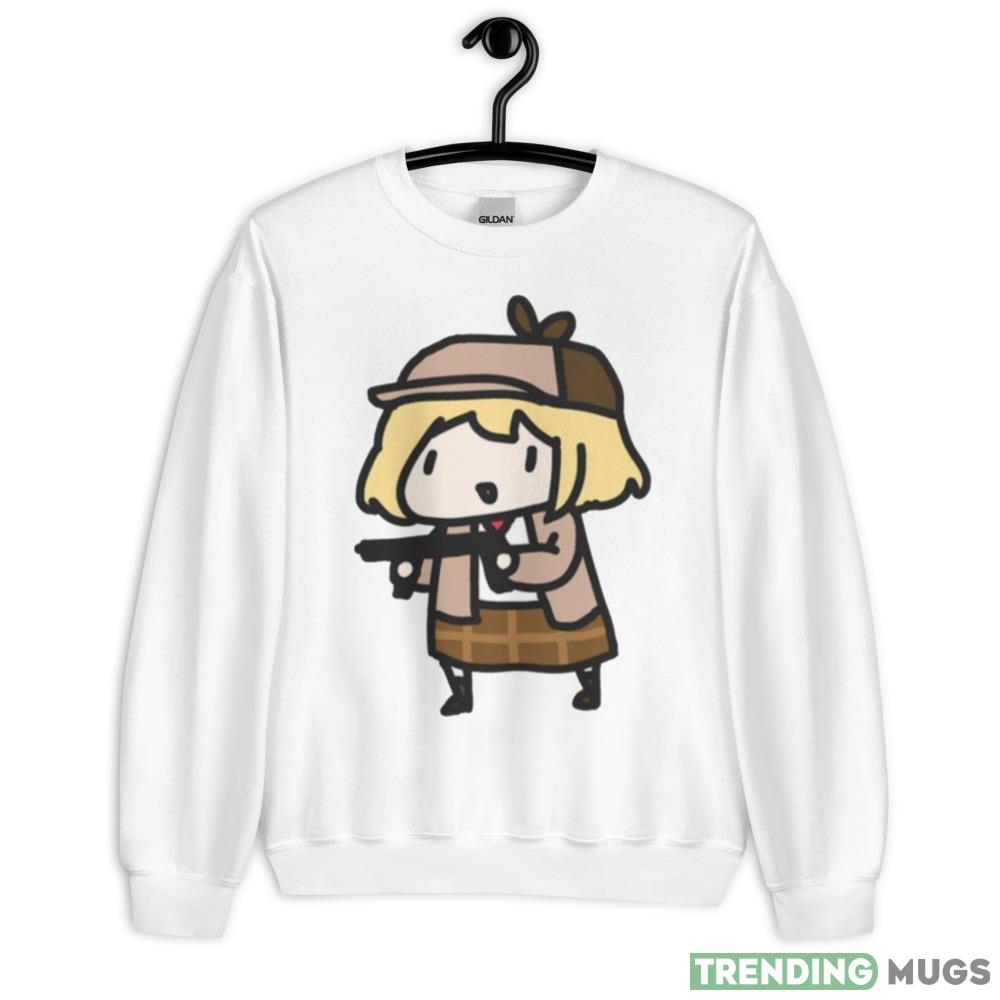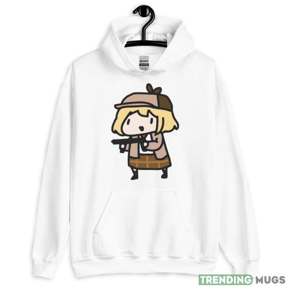 The shirt features a beautiful print of Amelia Watson in her iconic detective outfit, complete with her signature hat and magnifying glass. The design is simple yet striking, making it a great conversation starter among fellow fans of the Hololive Production.