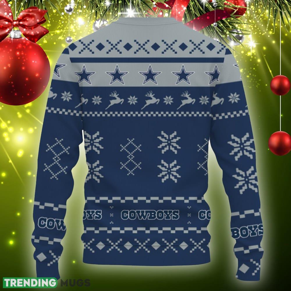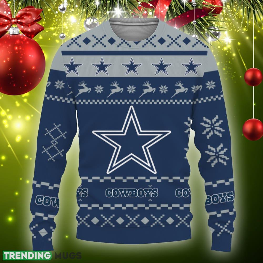 Whether you’re attending an ugly sweater party or simply looking to spread some holiday cheer, our Snow Santa Pattern Logo Dallas Cowboys Christmas Tree Knitted Christmas Sweater is the ideal choice. It’s the perfect holiday gift for yourself or your loved ones who are fans of the Dallas Cowboys.