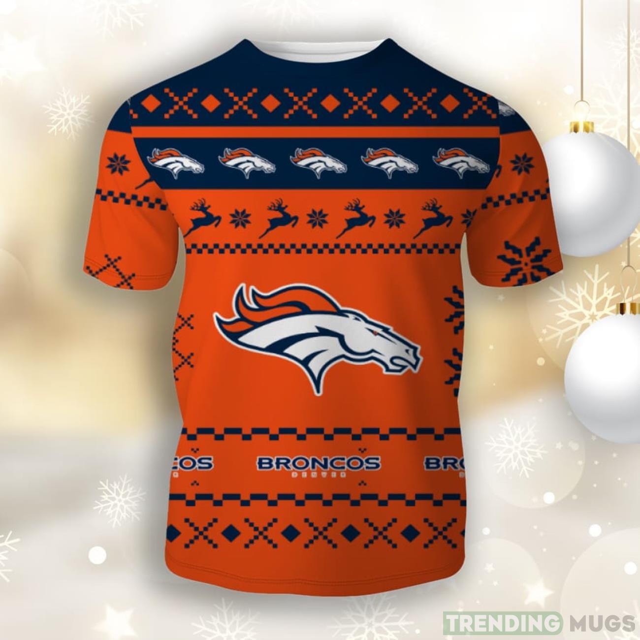 Whether you’re attending a Christmas party, watching the game with friends, or simply spreading holiday cheer, our Snow Santa Pattern Logo Denver Broncos 3D Unisex Christmas T-Shirt is the ideal choice. Don’t miss out on this hot trend item that combines your love for the Broncos with the festive atmosphere of Christmas. Order yours today and make this holiday season extra special!