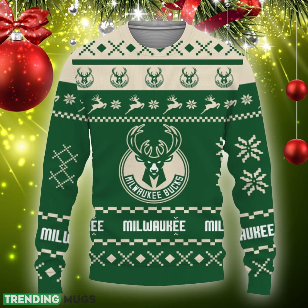 Some of the Snow Santa Pattern Logo Milwaukee Bucks Christmas Tree Knitted Christmas Sweater Gift Holidays photos