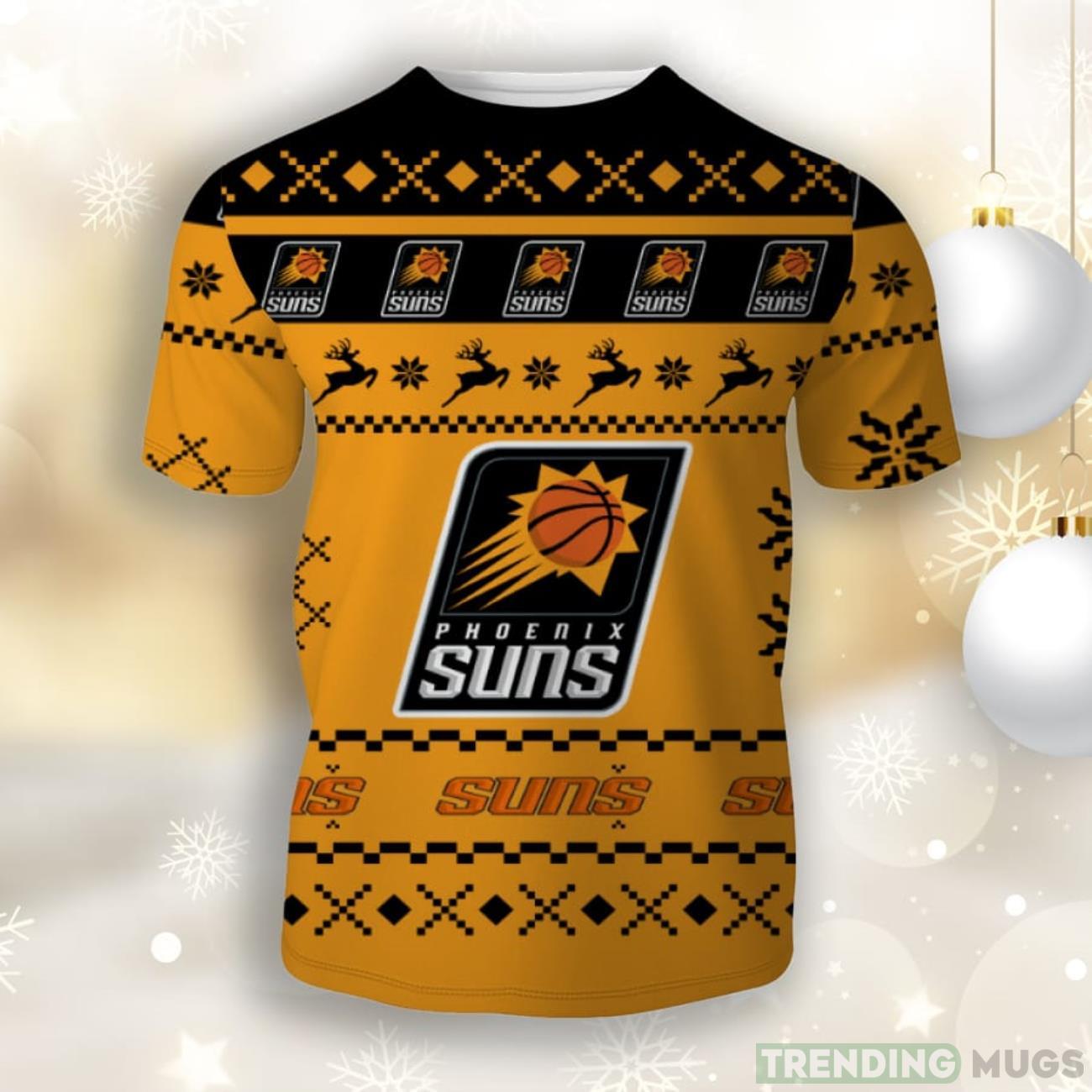 Made from high-quality materials, this unisex t-shirt ensures a comfortable fit for both men and women. Its soft and breathable fabric will keep you cozy throughout the holiday season. Whether you’re attending a Christmas party or cheering for the Suns at a game, this shirt is perfect for showcasing your fandom in style.