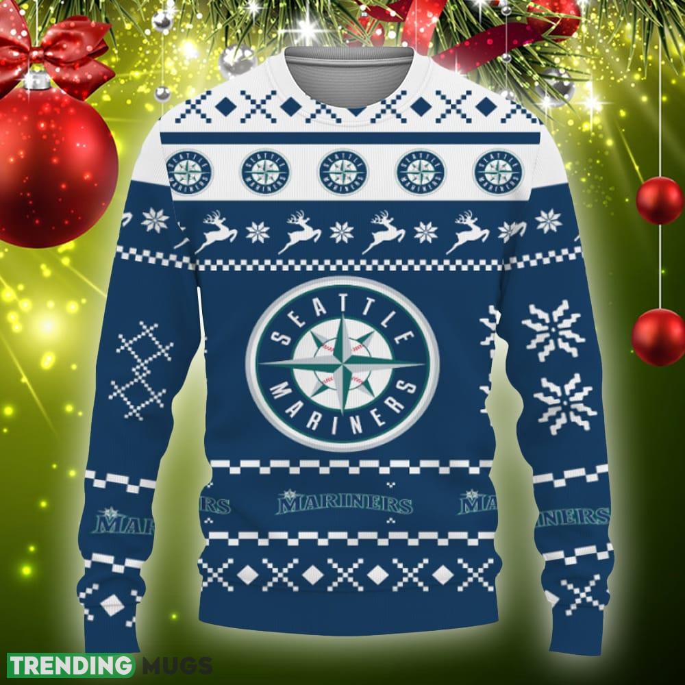 Featuring a unique Snow Santa Pattern Logo design, this sweater combines the joy of Christmas with your love for the Mariners. The vibrant colors and intricate details make it a standout piece for any holiday gathering or ugly sweater party.