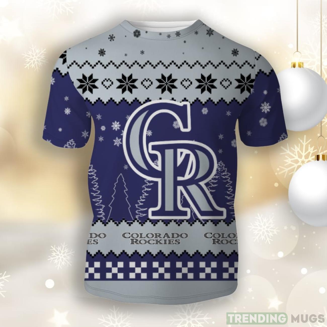 Whether you’re cheering on your favorite team at the stadium or attending a holiday party, this Christmas t-shirt is guaranteed to make a statement. It effortlessly combines your love for the Colorado Rockies with the joy of the holiday season, making it a must-have for any fan.