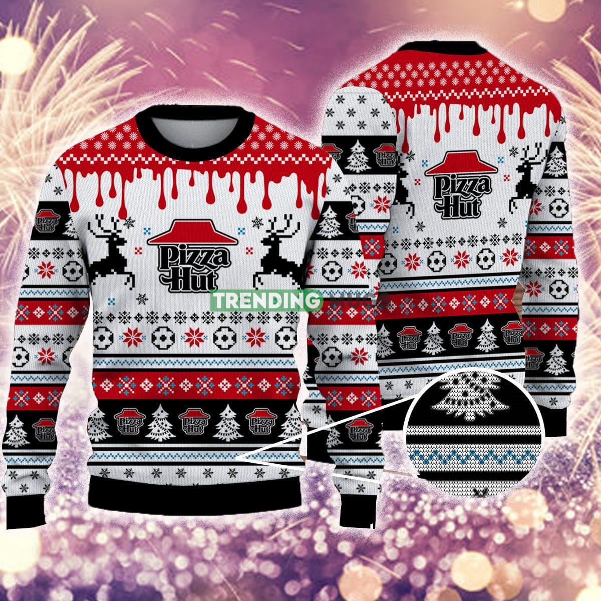 Crafted with utmost attention to detail, this sweater features a delightful combination of snowflakes, reindeer, and even a nod to everyone’s favorite pizza joint – Pizza Hut! The intricate 3D design adds a touch of whimsy, making it impossible to go unnoticed at any holiday gathering.