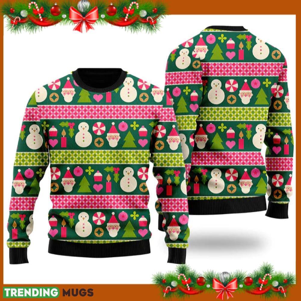 Crafted with utmost attention to detail, this sweater features an eye-catching design that will instantly spread holiday cheer. The snowman Santa motif on a vibrant green background adds a playful touch to your outfit, making you the life of any Christmas party.