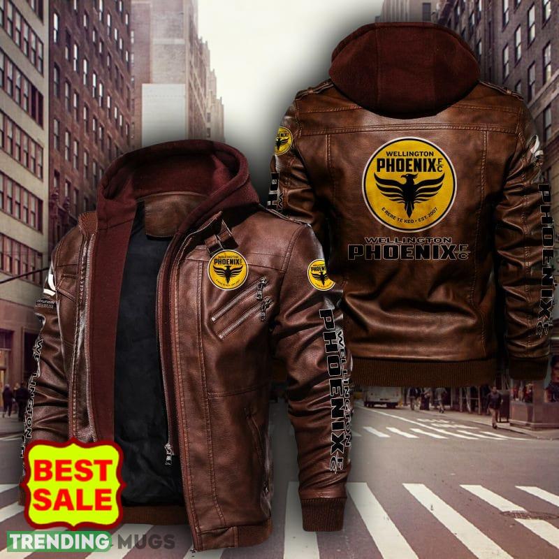 Don’t miss out on the opportunity to showcase your dedication to the Wellington Phoenix FC. Order your very own Soccer A League Wellington Phoenix FC Logo 6 Black Brown Leather Jacket today and elevate your fan status to new heights!