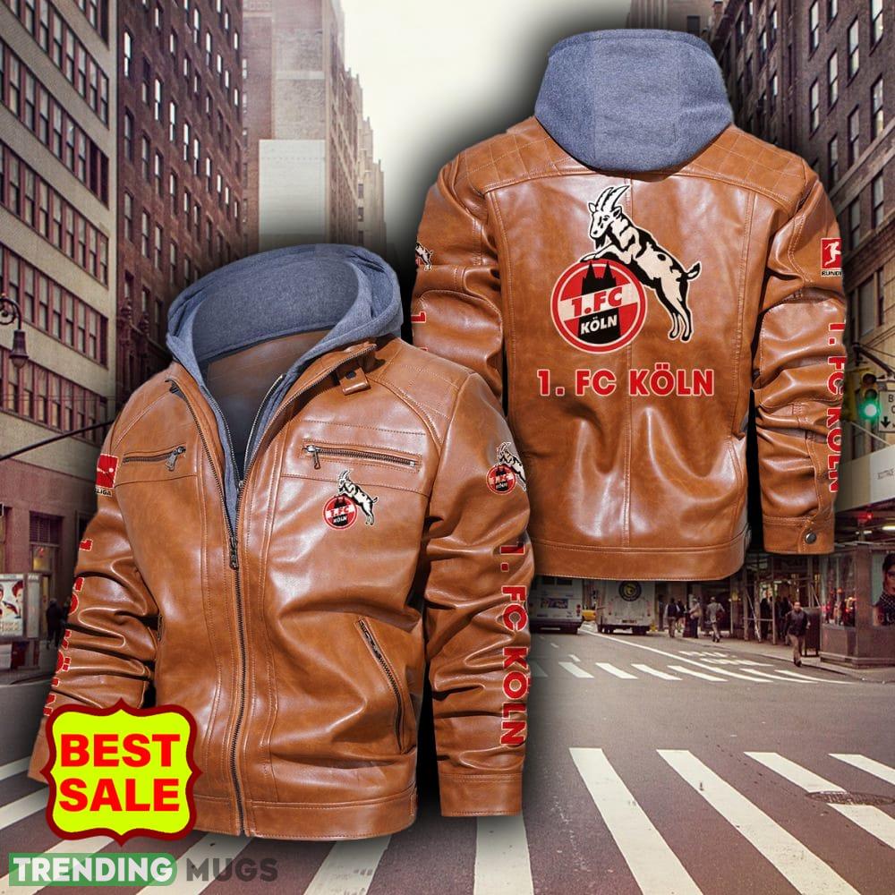 Soccer Bundesliga 1 FC Koln Fans Style 1 Logo Black And Brown Leather Jacket Men And Women 2D Leather Jacket