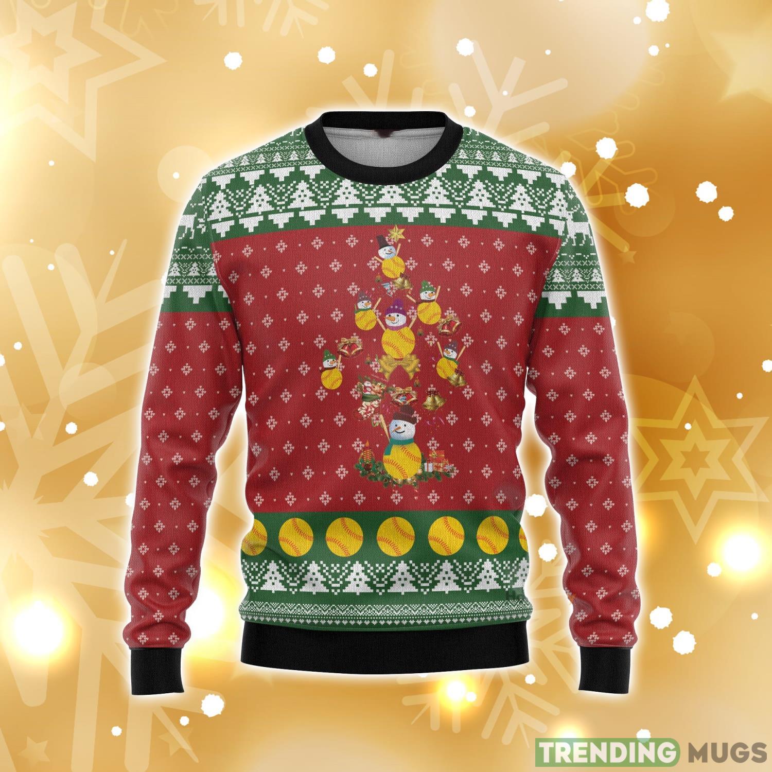 Softball Christmas Tree Ugly Christmas Sweater 3D All Over Printed Christmas Sweater Product Photo 1