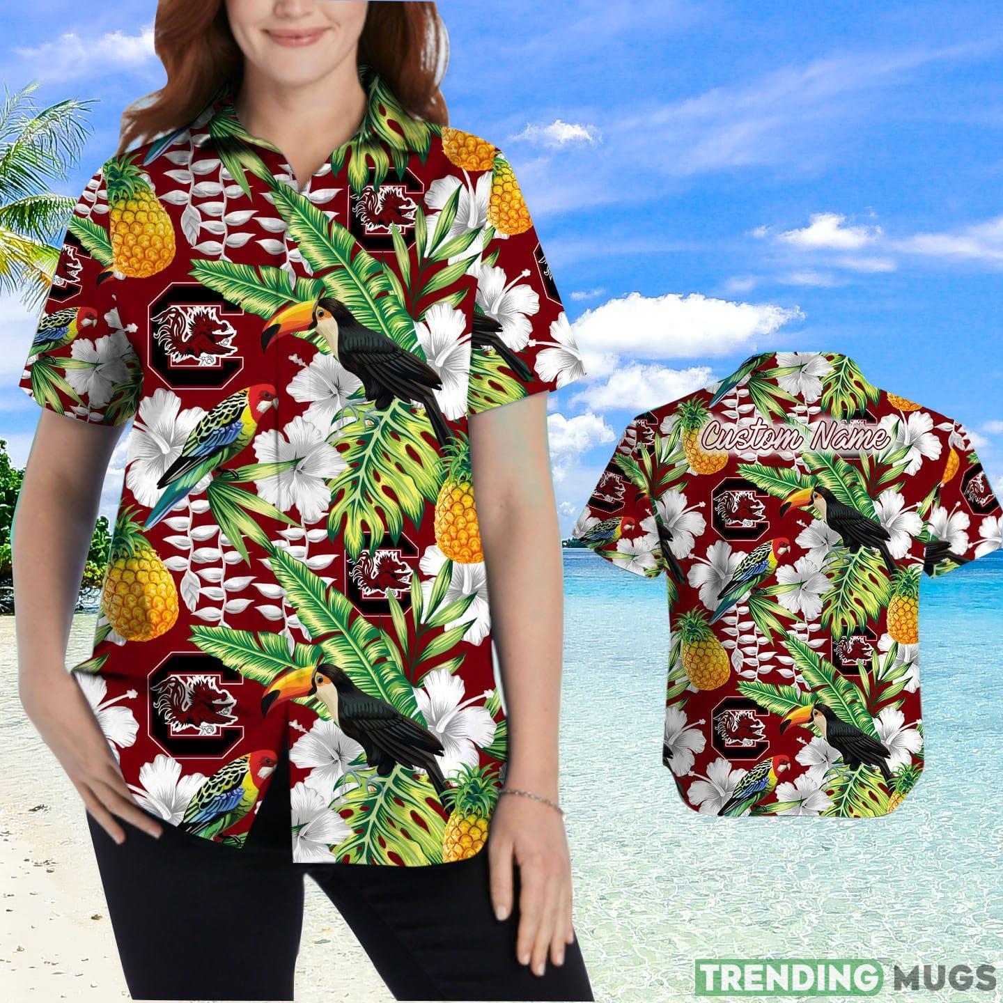 Some of the South Carolina Gamecocks Custom Name Parrot Floral Tropical Hawaiian Shirt photos
