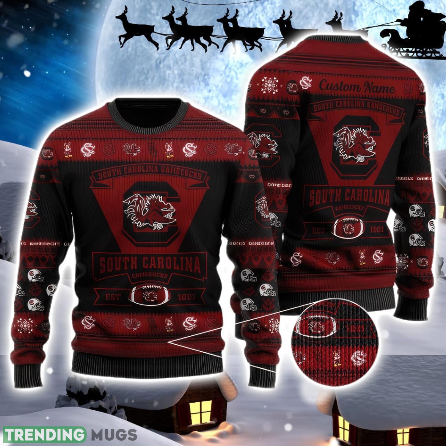 Designed with the iconic Gamecocks logo and colors, this ugly Christmas sweater is a must-have for any die-hard fan. And the best part? You can personalize it with your own custom name, making it a truly unique and special gift for yourself or a loved one.