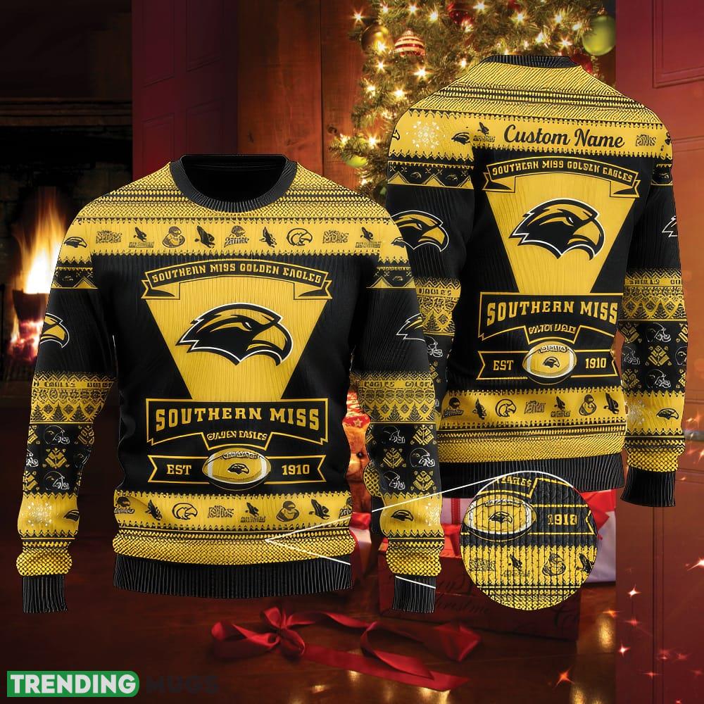 Southern Miss Golden Eagles Football Team Logo Ugly Christmas Sweater Tradition Custom Name 3D Sweater