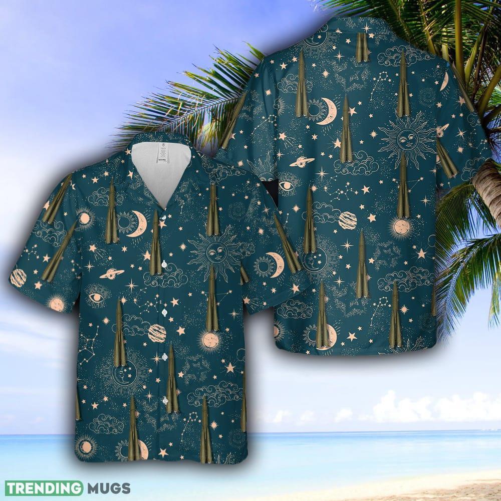 Crafted with meticulous attention to detail, our Hawaiian shirt features a stunning print of the renowned R7 ICBM Ship Rocket, beautifully blending the power of technology with the laid-back allure of the Hawaiian islands. The intricate artwork showcases the rocket’s sleek silhouette against a backdrop of tropical palm trees, creating a unique and eye-catching design.