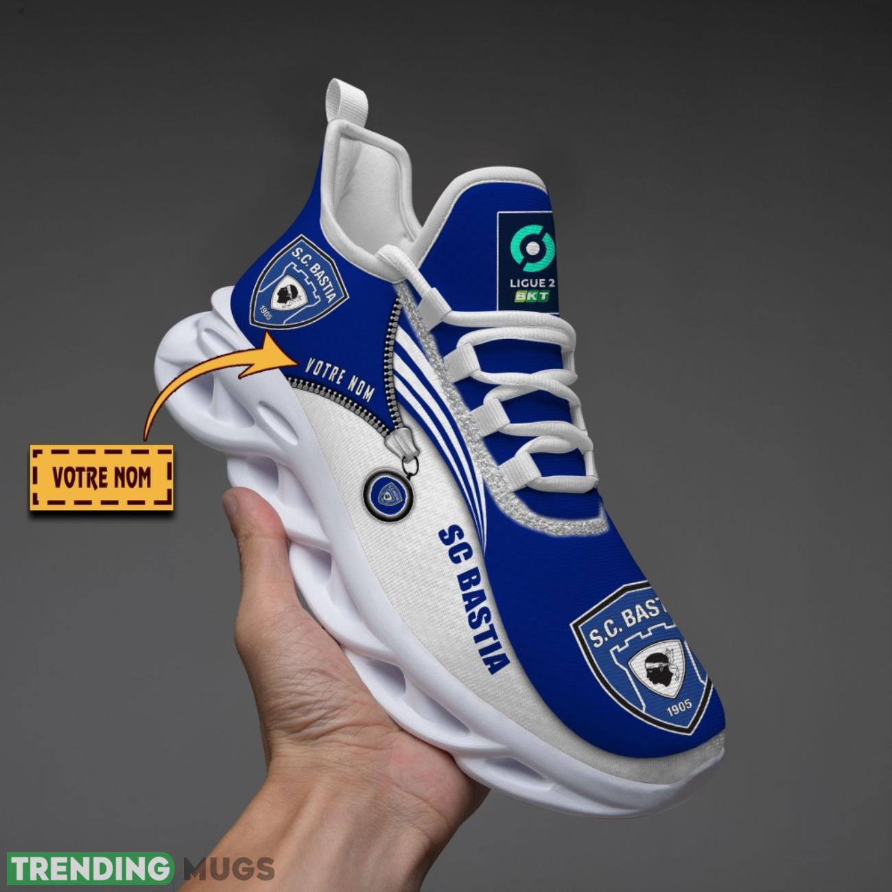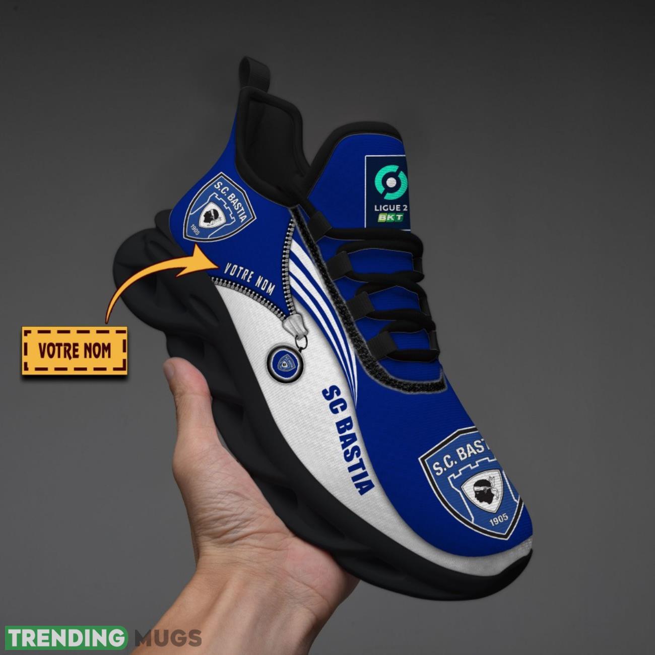 This Sporting Club di Bastia Custom Name Max Soul Sneakers Running Lover Gift Men And Women Shoes is a breathable, lightweight, and comfortable casual outdoor shoe that has a unique design. It is made of a mesh fabric which makes it sweat absorbent and breathable, while the rubber bottom ensures traction, comfort, and durability. It is available in two colors: black or white sole. There are two styles of shoelace holes so you can choose your preference.