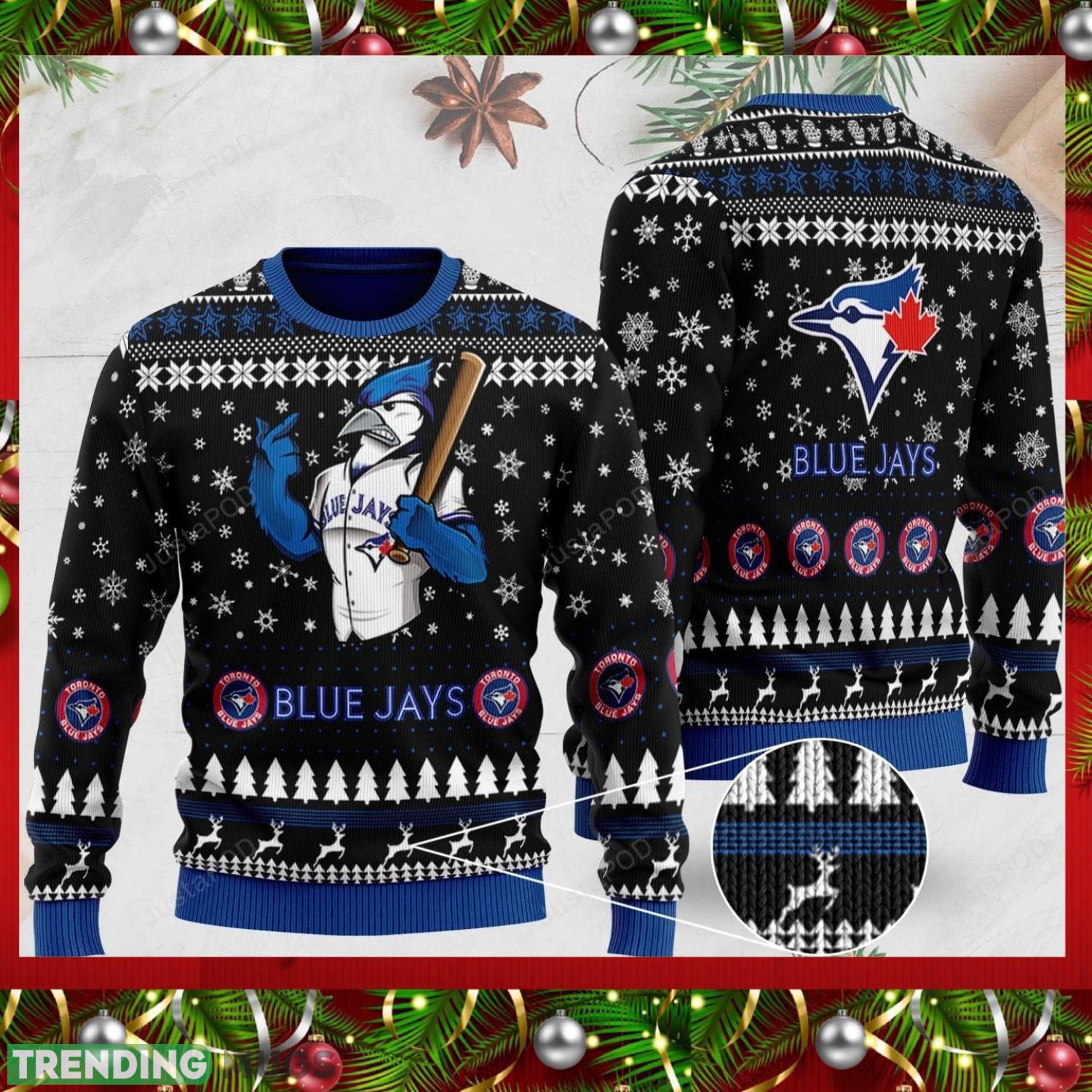 Sports Baseball Team Toronto Blue Jays With BJ Birdy The Mascot For Baseball Fans Christmas All Over Print Christmas Sweater Informations: