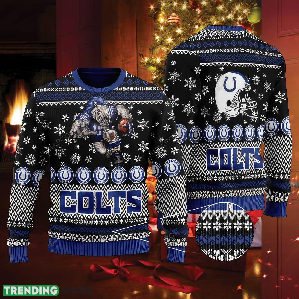 Sports Football Team Indianapolis Colts With Blue The Mascot For Ugly Christmas Sweater Poinsettia Informations: