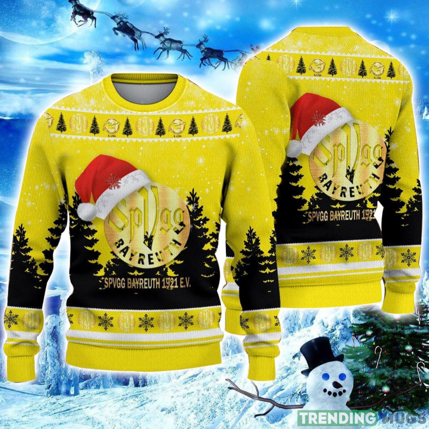 Get into the festive spirit with the SpVgg Bayreuth 1921 e.V. Logo Wearing Santa Hat Ugly Christmas Sweater! This unisex 3D Christmas sweater is the perfect way to showcase your love for your favorite football club while celebrating the holiday season. The sweater features the iconic SpVgg Bayreuth 1921 e.V. logo wearing a Santa hat, adding a touch of whimsy and cheer to your ensemble. Made with high-quality materials, this sweater is not only stylish but also comfortable to wear throughout the day. Whether you’re attending a holiday party or simply cozying up by the fireplace, this sweater is sure to turn heads and spread joy. Embrace the holiday spirit and show off your team pride with the SpVgg Bayreuth 1921 e.V. Logo Wearing Santa Hat Ugly Christmas Sweater!