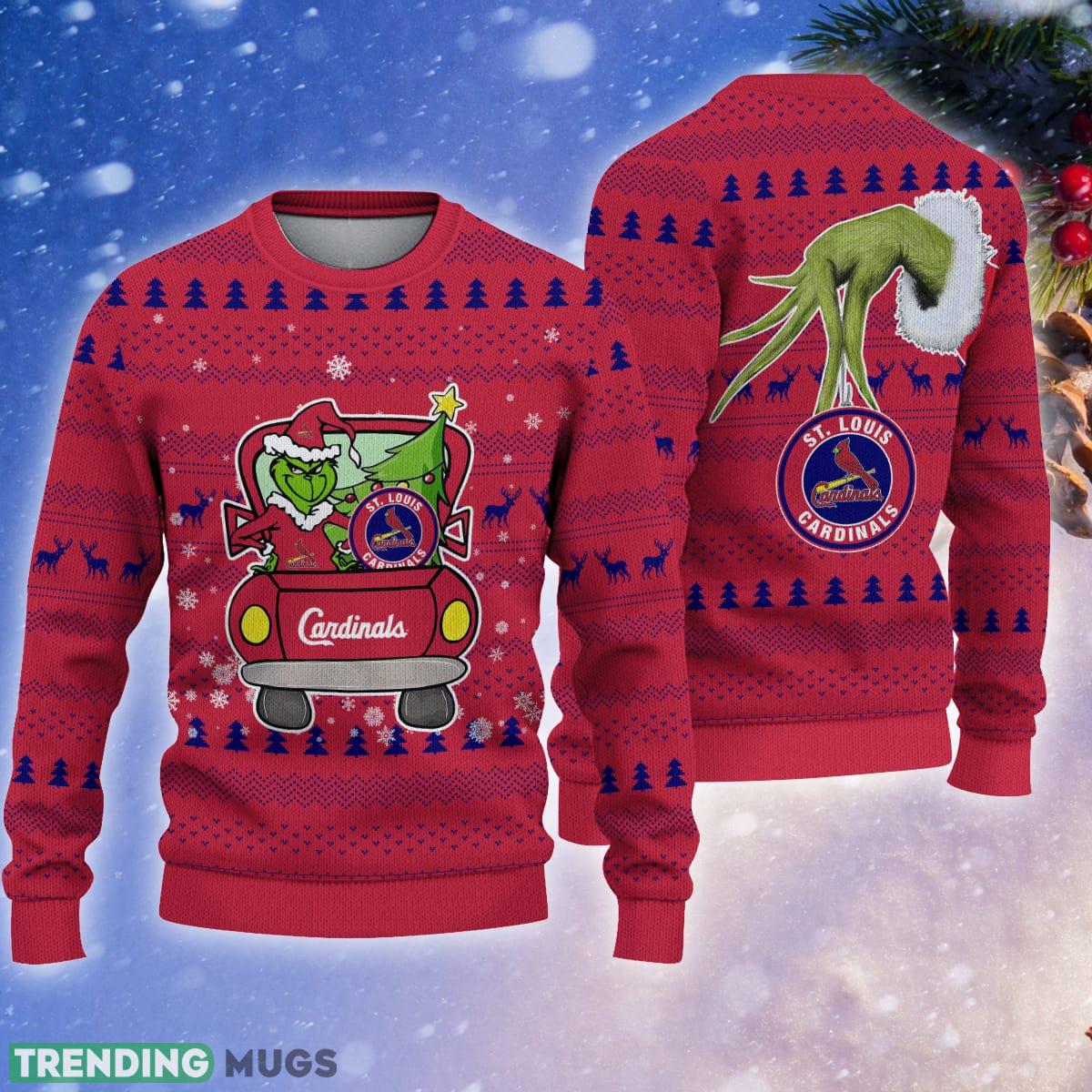 St. Louis Cardinals And Grinch Driving With Pine Trees Ugly Christmas 3D Sweater Gift For Men Women – St. Louis Cardinals And Grinch Driving With Pine Trees Ugly Christmas 3D Sweater Gift For Men Women