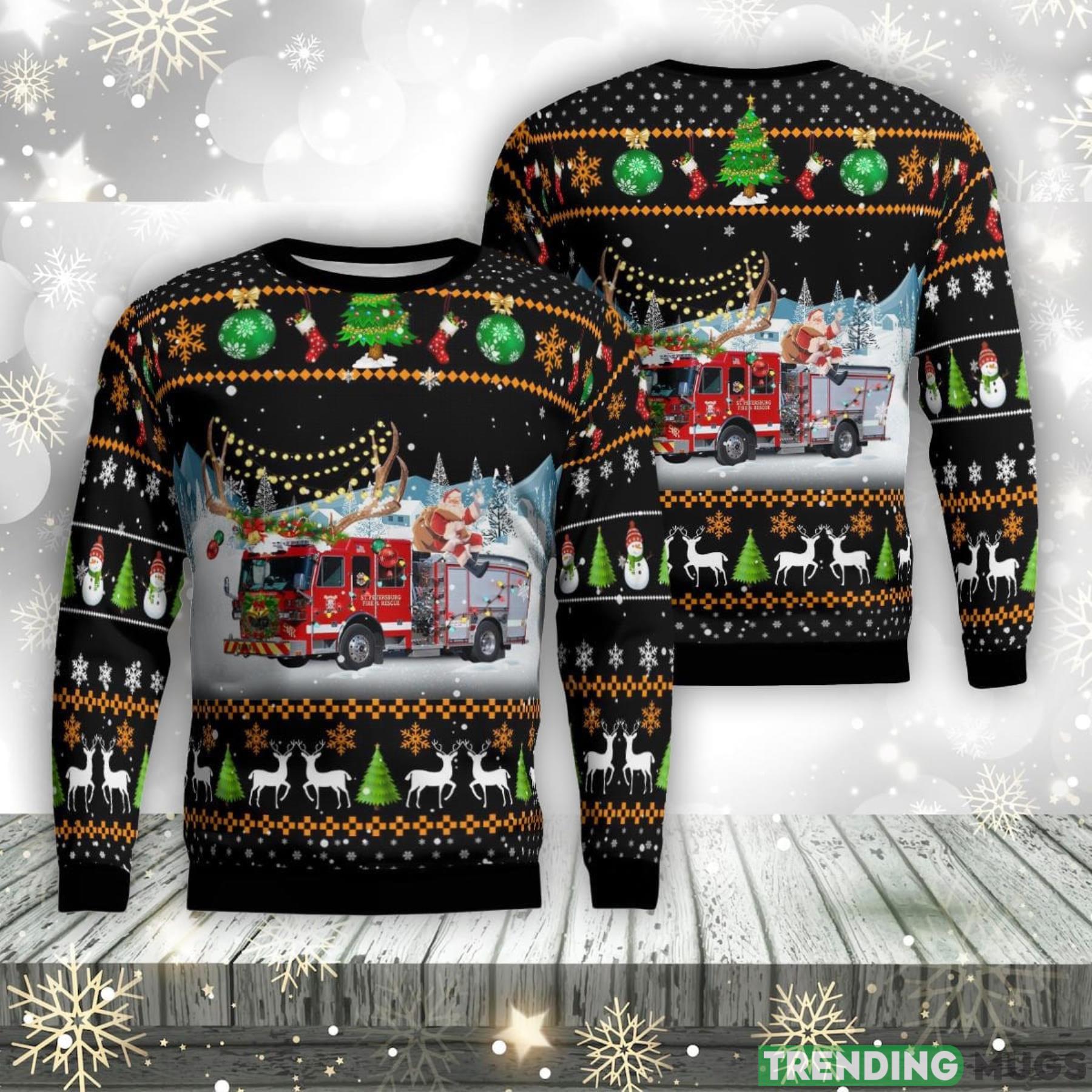This St. Petersburg Fire Department Christmas 3D Ugly Sweater Christmas Gift is not just a fashion statement, but also a heartfelt tribute to the brave men and women who risk their lives to keep our community safe. It is an ideal gift for firefighters, residents of St. Petersburg, or anyone who wants to add a touch of holiday cheer to their wardrobe.