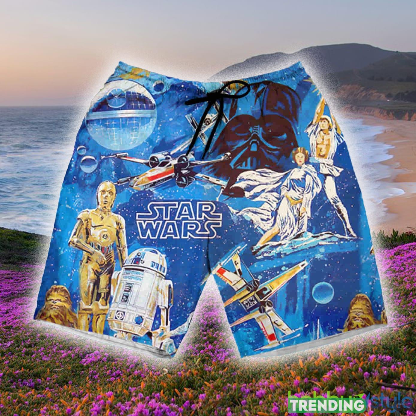 To complete the set, our matching shorts boast the same celestial design, creating a harmonious and head-turning outfit. Whether you’re lounging by the pool or attending a summer party, you’ll be the center of attention, effortlessly showcasing your love for Star Wars.