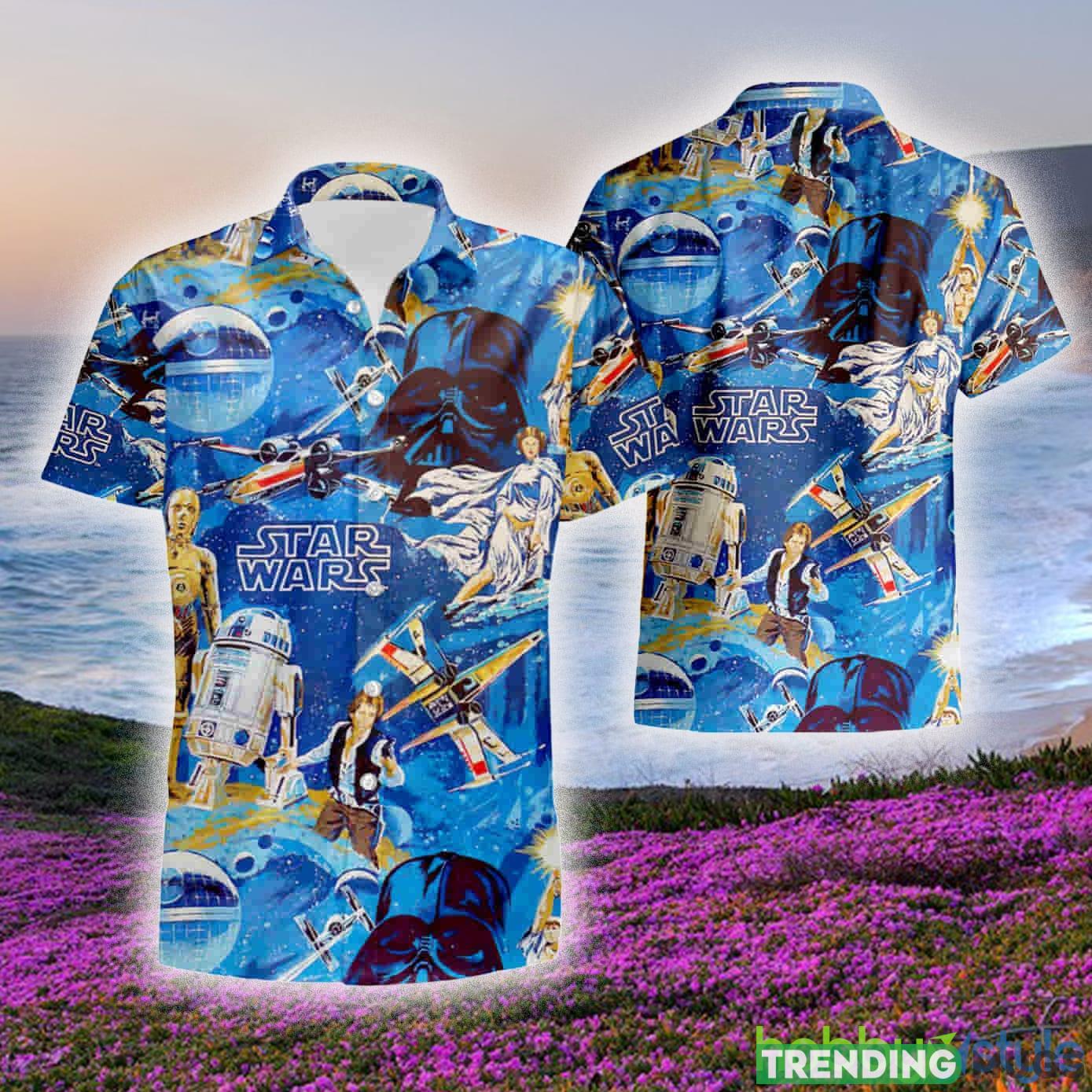 Crafted with meticulous attention to detail, our Hawaiian shirt features a captivating blue galaxy print that showcases iconic Star Wars characters and elements. From Darth Vader to R2-D2, this shirt offers a stylish homage to your favorite saga. The vibrant colors and meticulous 3D rendering bring these characters to life, making this shirt truly out of this world.