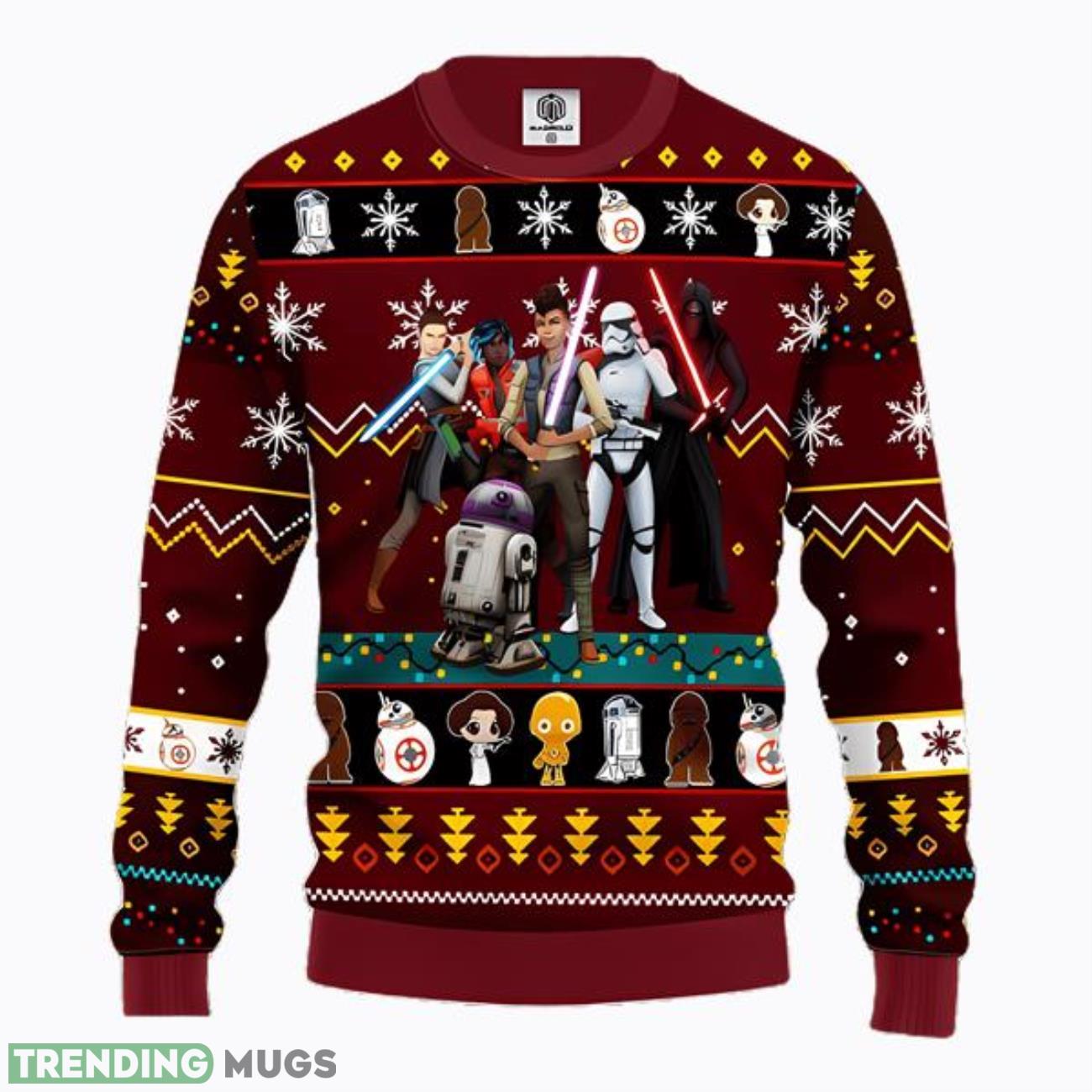 Featuring a delightful mix of Star Wars-themed motifs and traditional Christmas elements, this sweater is a true conversation starter. From Darth Vader sporting a Santa hat to Snowtroopers building snowmen, each design detail adds a playful twist to the holiday festivities. You’ll love the attention to detail and the nostalgic references that are sure to bring a smile to everyone’s face.