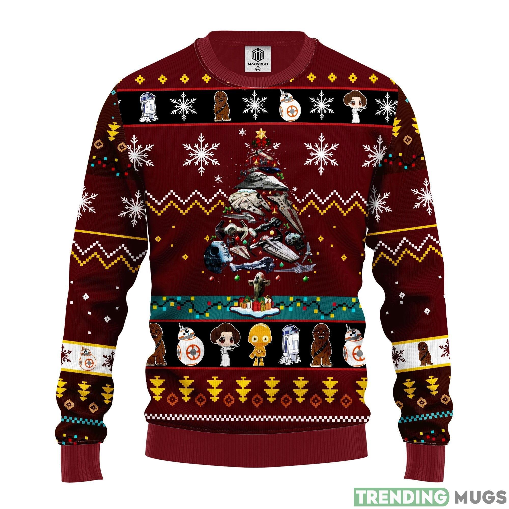 Crafted with utmost care and attention to detail, this sweater features a delightful combination of brown and red colors, creating a unique and eye-catching design. The iconic Star Wars characters and motifs are playfully incorporated into the sweater, adding a touch of whimsy and humor to your festive ensemble.